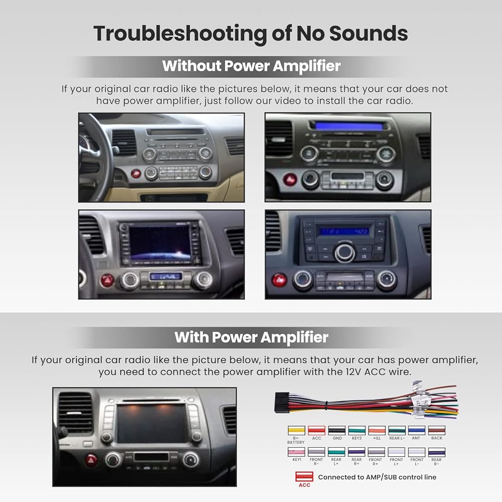 [صوت عالي الدقة] مع جهاز الاستقبال الداخلي، توفر لك ميزات جودة الصوت مثل مخرج مضخم الصوت المدعوم عناصر التحكم لتخصيص تجربة الاستماع لتفضيلات الاستماع الخاصة بك. ملاحظة: عدم وجود صوت يعني أن سيارتك مزودة بمضخم طاقة، يجب عليك العثور على كابل الطاقة الخاص بمكبر الصوت للتوصيل بسلك ايه سي سي 12 فولت لمنتجنا.