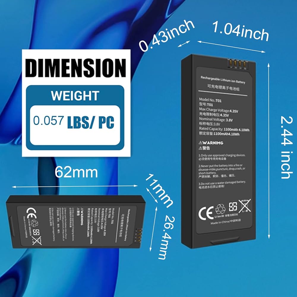 【بيانات البطارية】تكوين الخلية: السعة المقدرة لبوليمر الليثيوم: 1100 مللي أمبير في الساعة 4.18 وات في الساعة أقصى جهد للشحن: 4.35 فولت الجهد الاسمي: بطارية 3.8 فولت