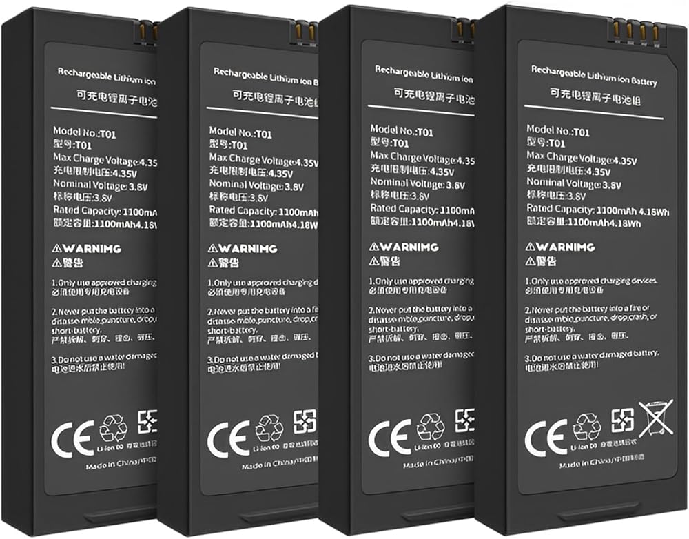 4 قطع × بطاريات 1100 مللي أمبير في الساعة لطائرة Ryze Tech DJI Tello Drone (أسود)