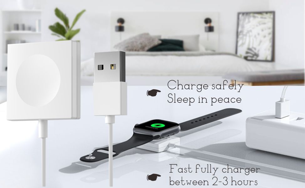 【Fast Charging】: It could fully charge your watch within 2.5 hours and charge as fast as the original magnetic charger. For a better charging experience, we recommend you to use 5V/2A adapter or Apple Watch original Adapter charger.