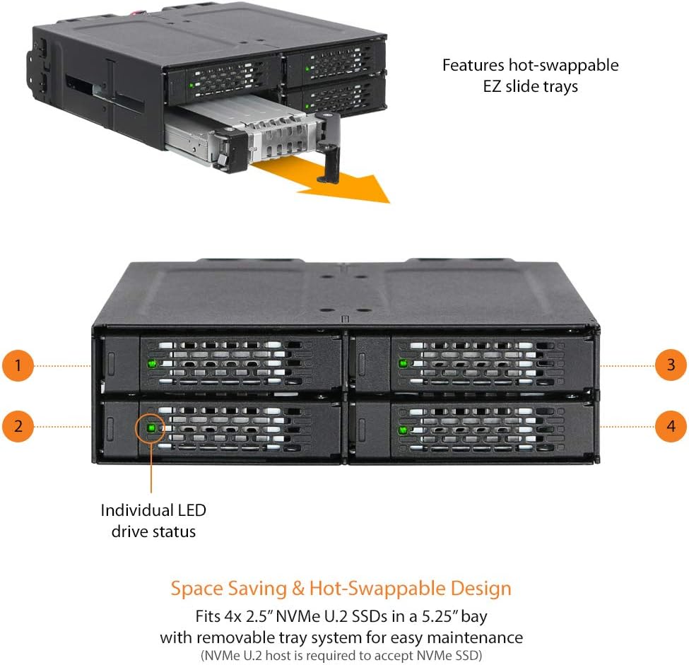 آيسي دوك حامل جوال متين معدني بالكامل بـ4 فتحات 2.5 انش وذاكرة مستديمة U.2 SSD من تاف ارمور - 5.25 انش - MB699VP-B
