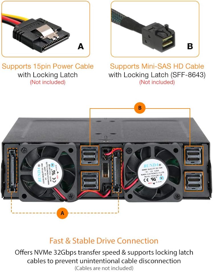- يستخدم منفذ U.2 (SFF-8639) للاتصال، ويتطلب مضيف الذاكرة المستديمة