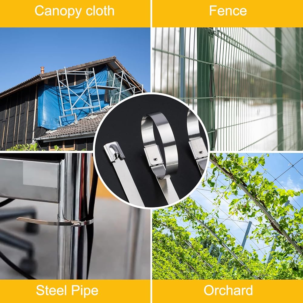 【استخدام واسع】أربطة الكابلات المعدنية مثالية لتثبيت الأسلاك الشائكة وشبكة الحديقة وأعمدة السياج، وبناء أقفاص الدجاج وأقفاص الحيوانات الأليفة، وربط الأسلاك والأنابيب، وتعديل أنابيب عادم السيارة، وأكثر من ذلك.