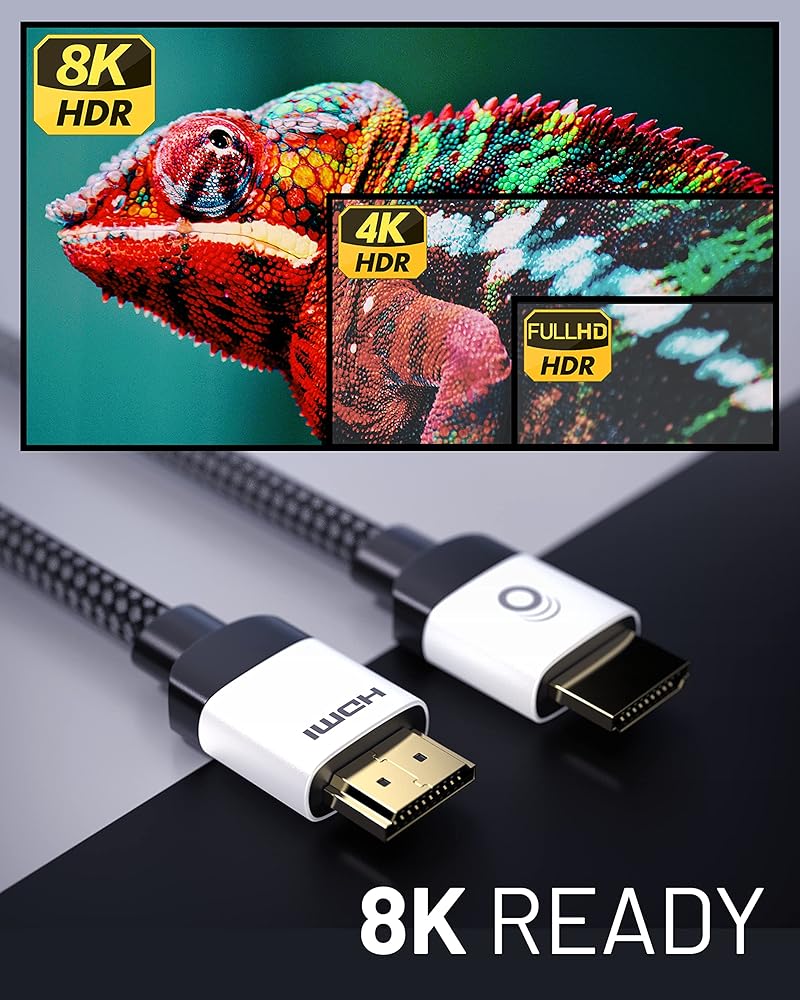 هل تحتاج إلى السرعة؟ يحتوي كيبل HDMI فائق السرعة المعتمد هذا على نطاق ترددي 48 جيجابايت في الثانية مما يعني أنه يمكنه دعم إشارات 8K عند 60 هرتز، و4 كيه عند 120 هرتز، و1080 بكسل عند 144 هرتز.