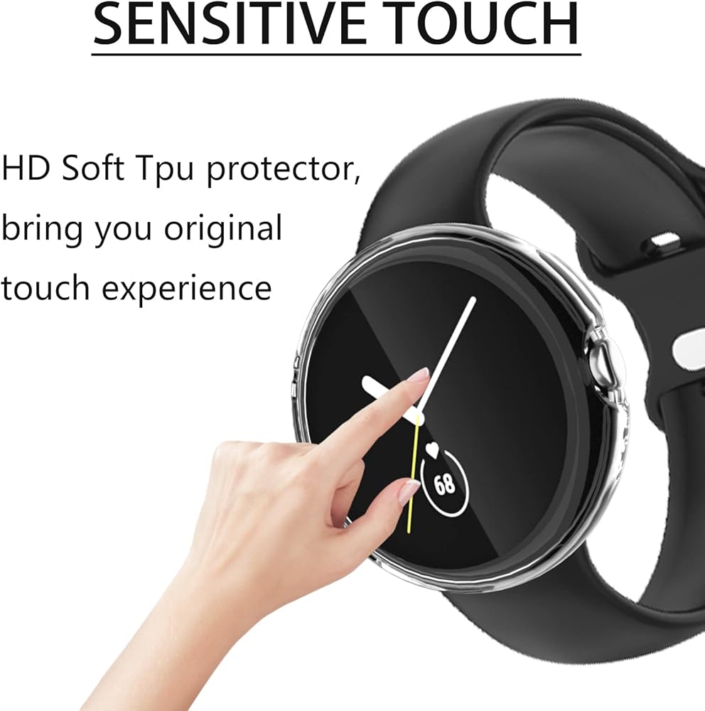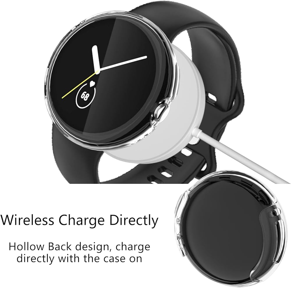 جراب Cuteey من 4 قطع لساعة Google Pixel مع واقي للشاشة، غطاء شاشة شفاف عالي الدقة من البولي يوريثان اللدن بالحرارة ناعم نحيف مطلي بالكامل لملحقات ساعة Google Pixel (شفاف/شفاف/شفاف/شفاف/شفاف)