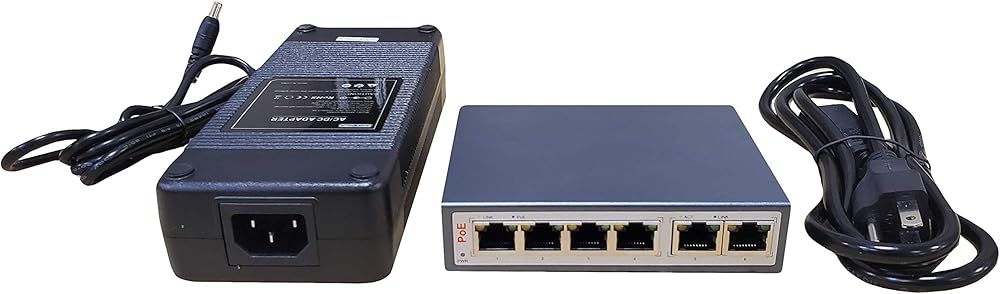 إجمالي 6 منافذ، 4 منافذ POE، 2 منافذ توصيل - يحتوي المحول على (4) منافذ POE تعمل بالطاقة 10/100 مع منفذين إضافيين 10/100 غير مزودين بالطاقة.