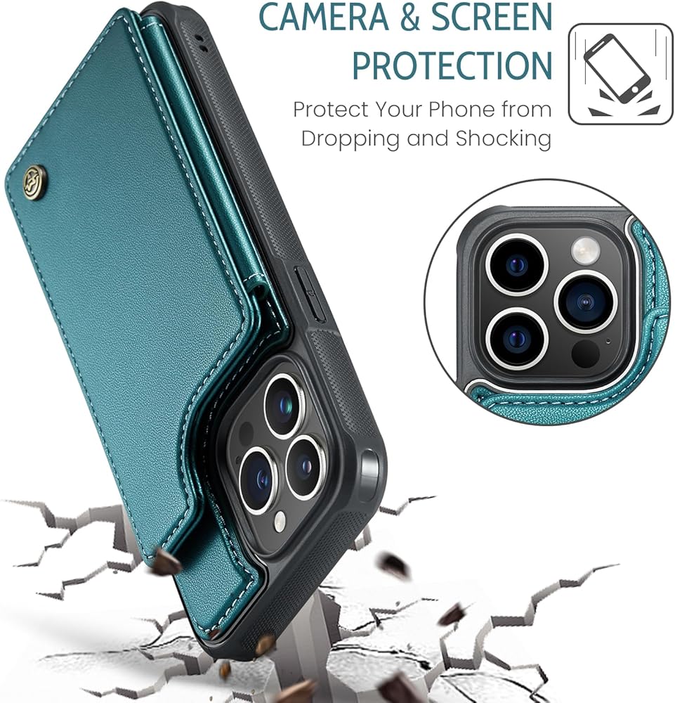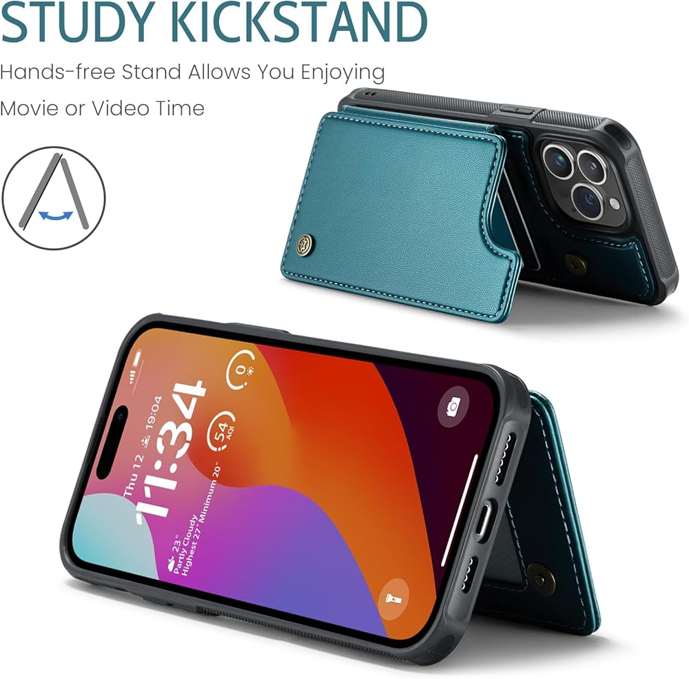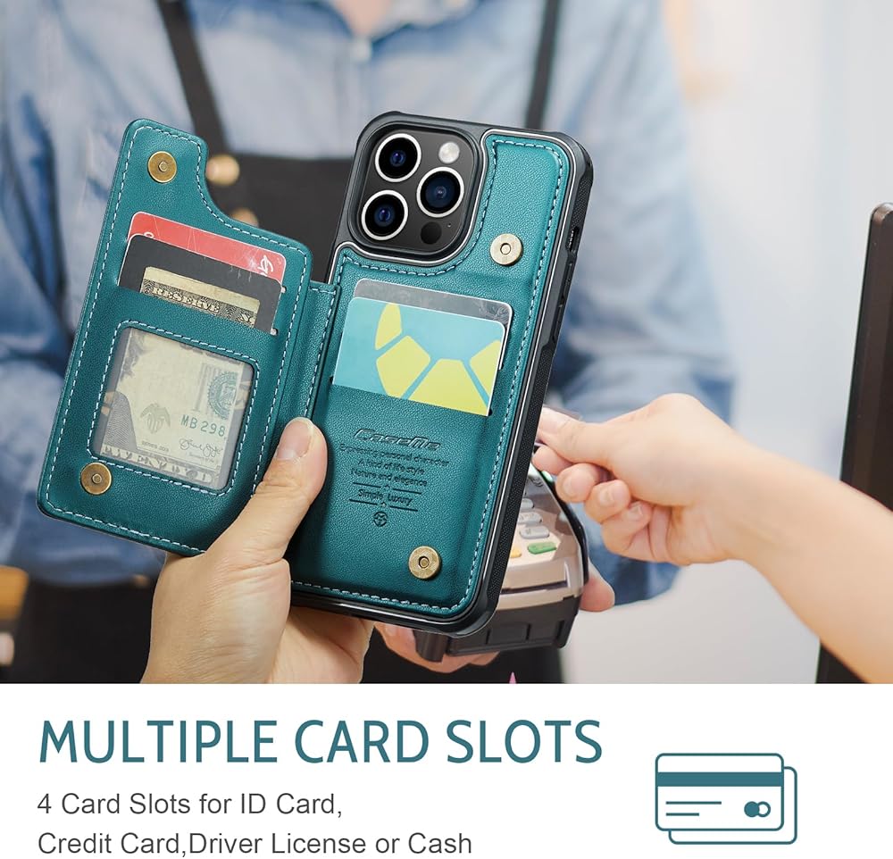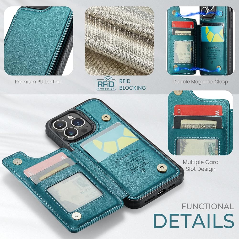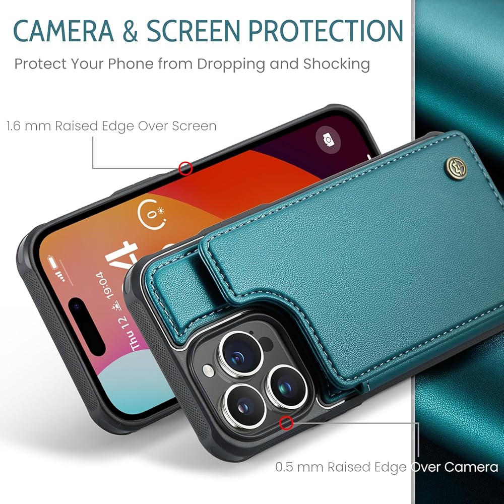 【حجب RFID】مزود بتقنية حجب RFID، تم تصميم حافظة المحفظة لهاتف iPhone 15 Pro لحماية بطاقاتك ومعلوماتك من السرقة باستخدام مادة حجب مبتكرة. يتم وضع معظم بطاقات الائتمان وبطاقات الخصم وبطاقات الهوية في شريحة RFID، ويمكن لقارئ RFID قراءة معلومات البطاقات بسهولة في غضون 10 أقدام (حوالي 3 أمتار) دون لمسها.