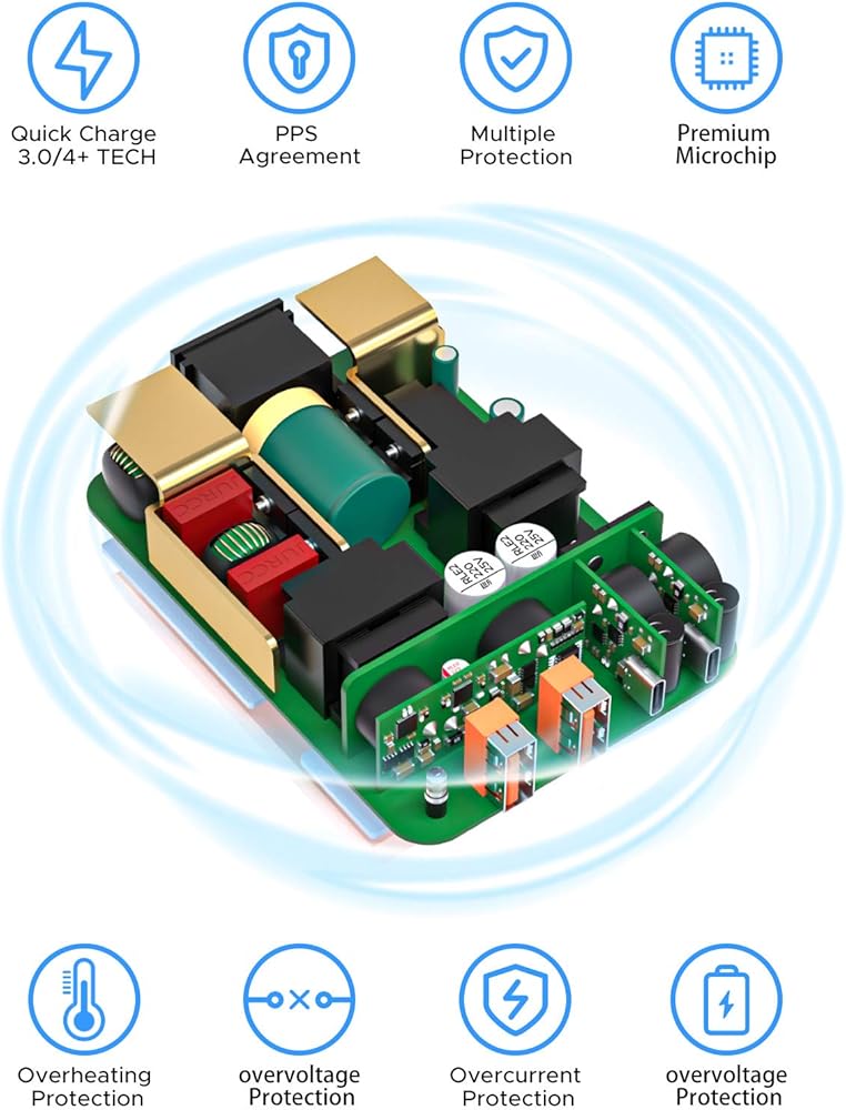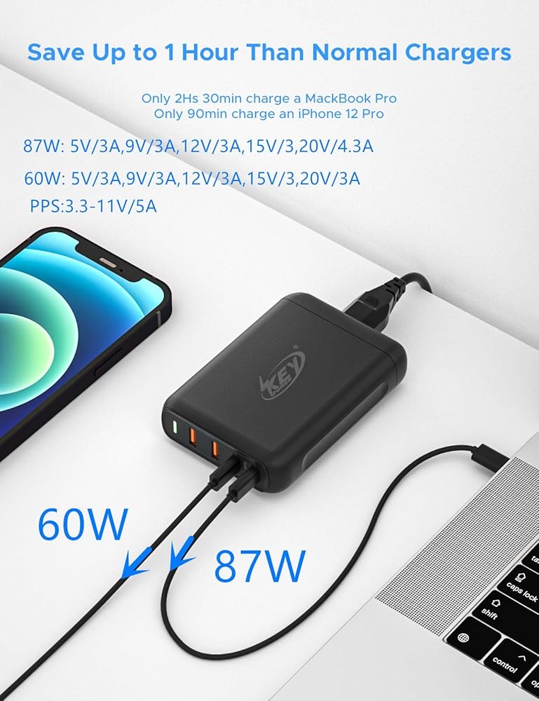 • 【شاحن USB C للإخراج السريع من الجيل الجديد】يغير الإخراج المستقل لشاحن الجيل الجديد طريقة شحن الأجهزة المتعددة، إجمالي قوة التصميم 100 وات شاحن USB C. إجمالي طاقة الإخراج 90 وات مع شاحن PD 3.0، كل منفذ يخرج 30 وات (كحد أقصى) (15 فولت/2 أمبير، 20 فولت/1.5 أمبير، 5 فولت/3 أمبير، 9 فولت/2 أمبير، 12 فولت/1.5 أمبير) و20 وات (كحد أقصى) (5 فولت/3 أمبير، 9 فولت/ 2.22 أمبير، 12 فولت/1.67 أمبير) لشحن جهاز iPad Air وiPad Pro وiPhone 15/14/13/12 والمزيد. هذا الشاحن السريع مزود بـ 3 منافذ USB إضافية (إجمالي 5 فولت/4 أمبير) لأجهزتك الذكية.