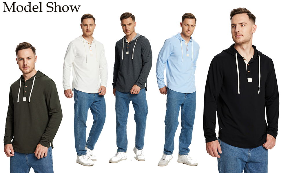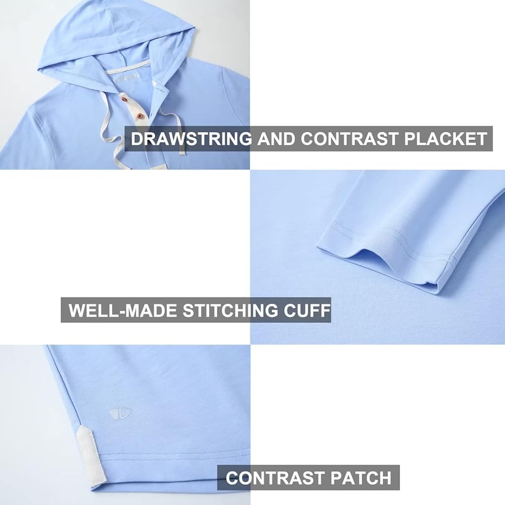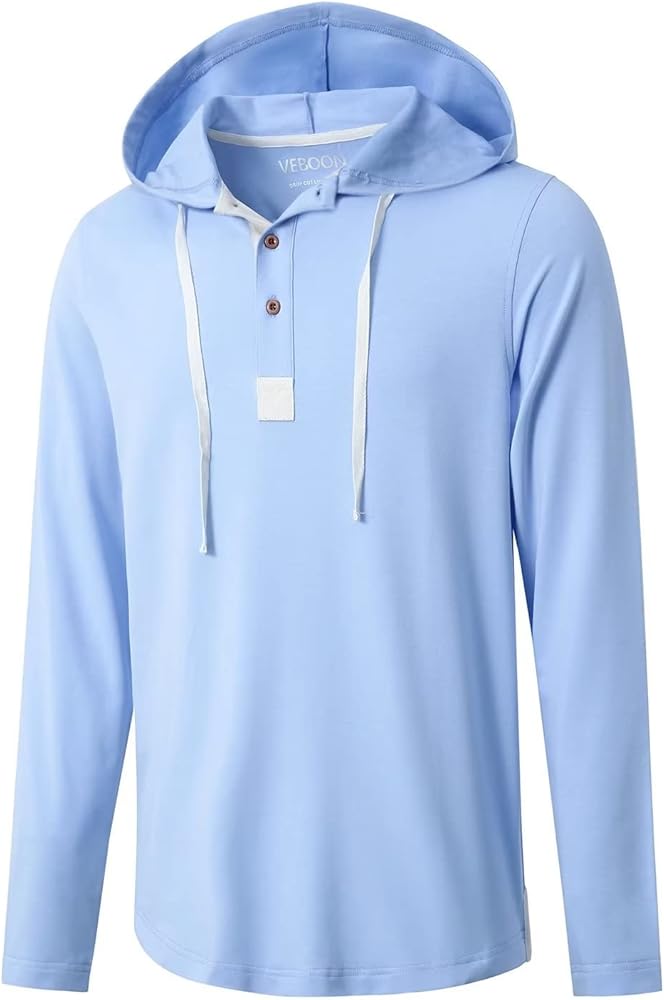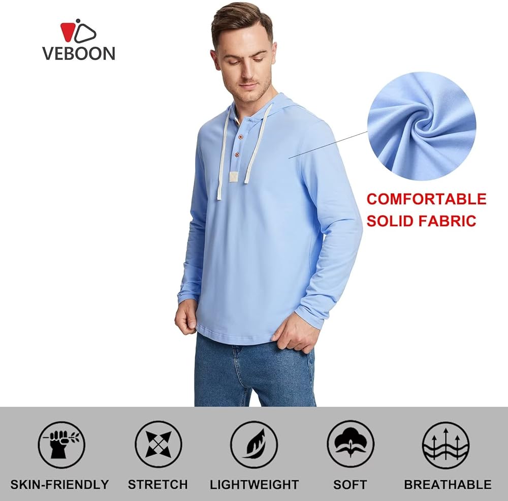 خامة عالية الجودة: السترات ذات القلنسوة الرجالية الخاصة بنا مصنوعة من مزيج القطن والبوليستر والألياف اللدنة. ناعم وخفيف الوزن ومطاط وجيد التهوية عند الارتداء، ويبقيك مرتاحًا ويحافظ على شكله الجيد بعد الغسيل. عامل حماية من الأشعة فوق البنفسجية 30+ لحماية ممتازة من الأشعة فوق البنفسجية للشمس.