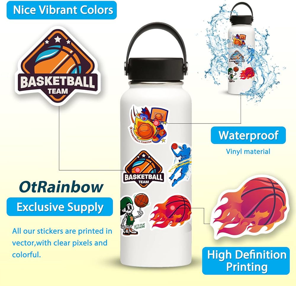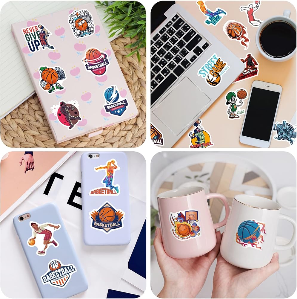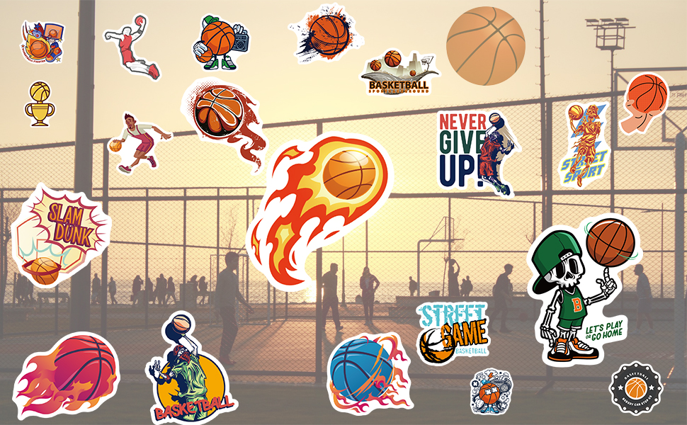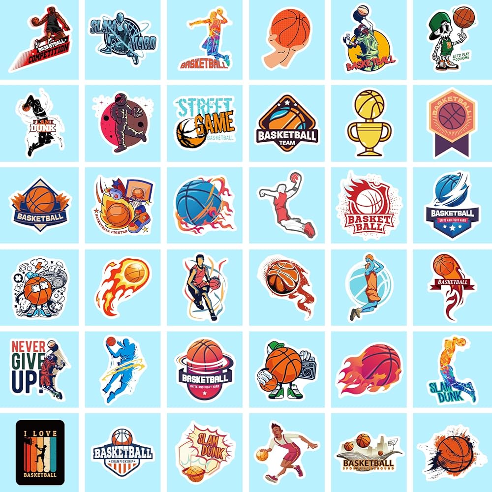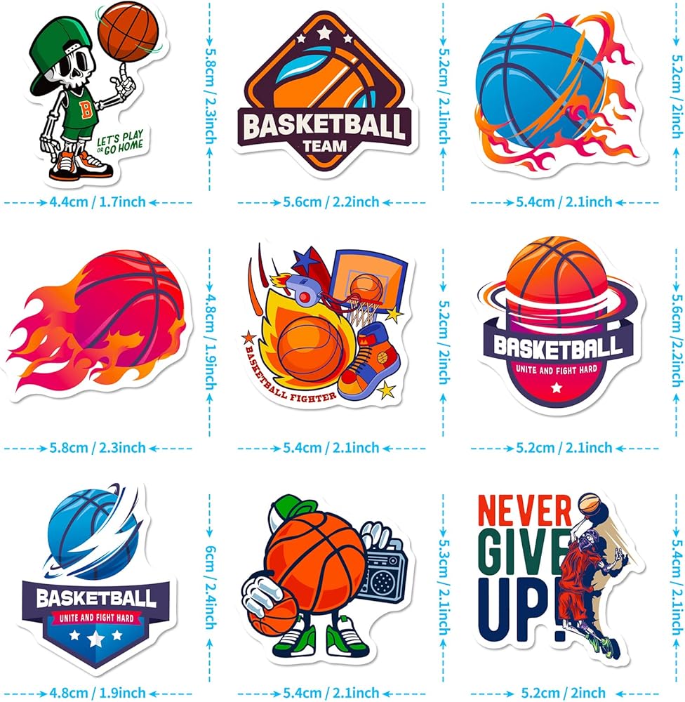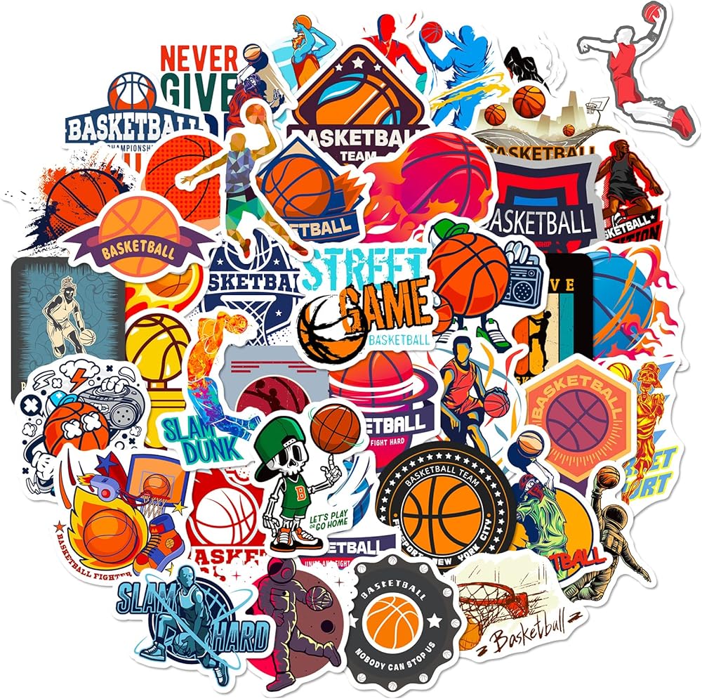 احتضن روح اللعبة وأظهر حبك لكرة السلة مع ملصقات كرة السلة النابضة بالحياة والأنيقة هذه. اطلب مجموعتك اليوم وارفع من أسلوبك الشخصي!