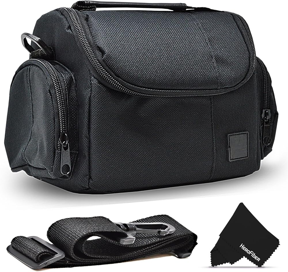 بالإضافة إلى ذلك، تتضمن حقيبة الكاميرا حزام كتف منفصل ومريح قابل للفصل وقطعة قماش تنظيف فائقة النعومة من هيروفايبر مصممة لتنظيف الإلكترونيات والإكسسوارات.