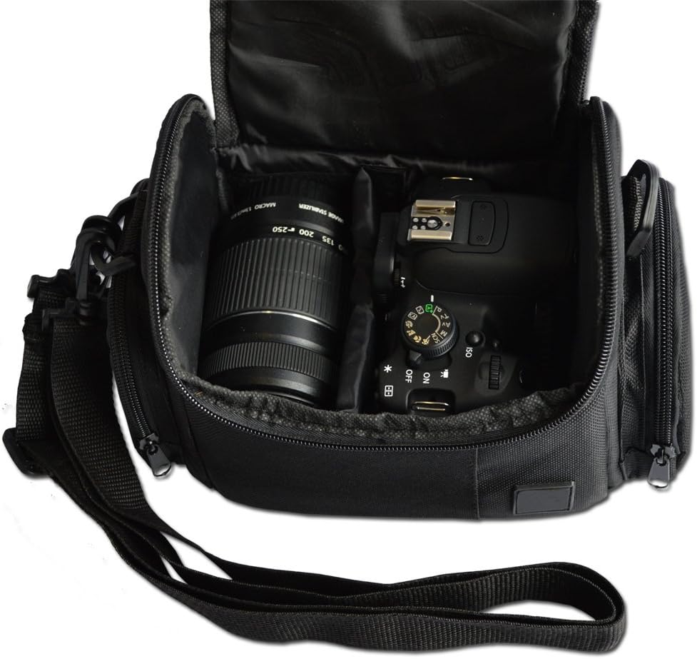 تتضمن حقيبة كاميرا DSLR متوسطة مبطنة جيدًا مع جيوب بسحاب وحجرات ملحقات لكاميرا كانون EOS Rebel T6i T6S T5i T4i T3i T2i SL1 EOS 70D 6D 6D 5D 750D 70D 70D 700D 650D 650D 600D 550D 1200D 1100D 0D 100 كاميرات دي اي او اس M3 M2 T1i XTi XT SL1 XSi 7D Mark II DSLR كاميرات.