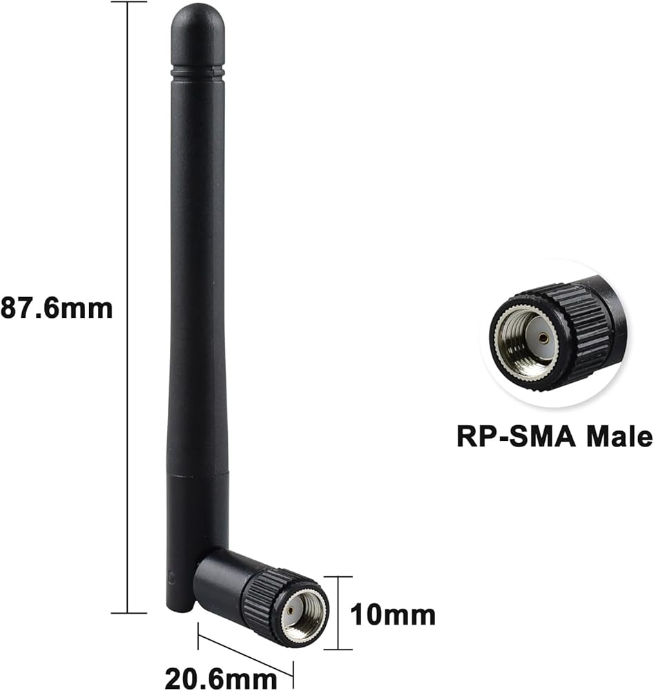 • Product series : RP-SMA antenna, dual-band wifi antenna, frequency range : 5/5.8G (5150 - 5850 MHz), gain : 3DBI.