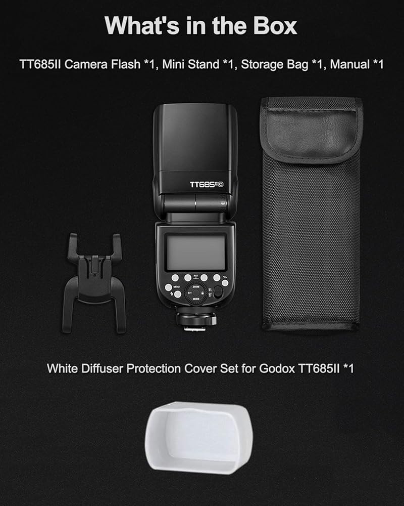 تمت ترقية فلاش الكاميرا GODOX TT685II-S من فلاش Godox TT685-S، ويتم إضافته مع وظيفة TCM لتعزيز كفاءة التصوير لديك. تمت ترقيته بزاوية ميل أوسع من -7 درجات إلى 120 درجة، وقابل للدوران بمقدار 360 درجة. كما تمت ترقيته بقفل سريع التحرير لضمان الإعداد السلس.