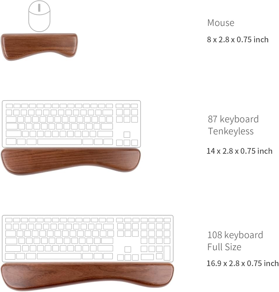توافق عالٍ: 3 أحجام من دعم معصم الكمبيوتر - الحجم الكامل، TKL، مسند راحة اليد لمعظم أجهزة الكمبيوتر المحمولة وأجهزة الكمبيوتر ولوحات مفاتيح الألعاب والماوس، مثالي للاستخدام اليومي للكمبيوتر.