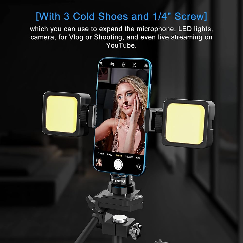 ✅【مع 3 أحذية باردة ومسمار 1/4 بوصة】يأتي حامل الهاتف ثلاثي القوائم هذا مع منفذ لولبي قياسي 1/4 بوصة و3 أحذية باردة، والتي يمكنك استخدامها لتوسيع الميكروفون، وأضواء LED، والكاميرا، لمدونة الفيديو أو التصوير، وحتى البث المباشر على موقع يوتيوب.