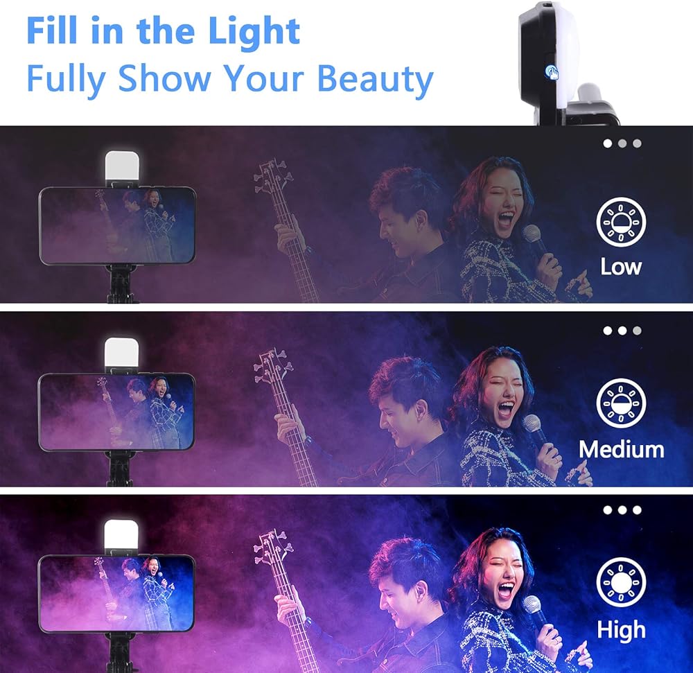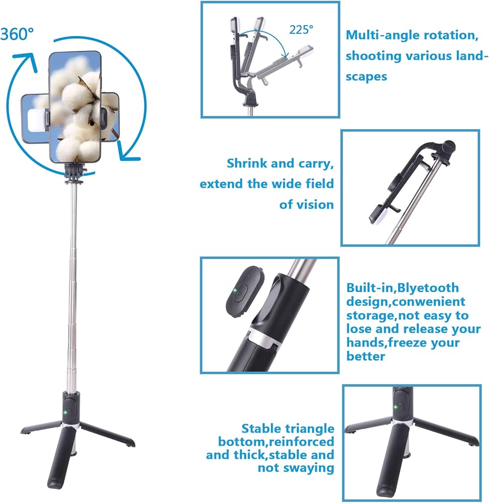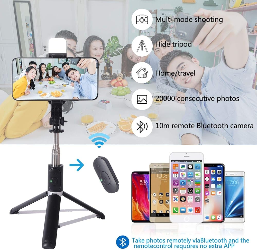 【حامل هاتف محمول】 -- بوزن 5.9 أونصة وحجم مطوي 7.6 بوصة، فهو مريح جدًا بالنسبة لك لأخذه لأنه يمكنك وضعه في جيبك أو حقيبتك. وطول التمدد يصل إلى 41 بوصة مثالي لصور السيلفي والصور الجماعية وسفر المغامرات ومدونات الفيديو ومقاطع فيديو YouTube والبودكاست وFacebook Live وFaceTime وInstagram والبث المباشر والاجتماعات عبر الإنترنت ومشاهدة مقاطع الفيديو.