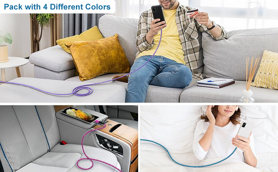 • Extra Long & Multicolored: 6FT extended design enough to reach wherever you like to sit. If you have a habit of losing cables, these multicolored cables are recommended as a backup and the colors help keep them organized.