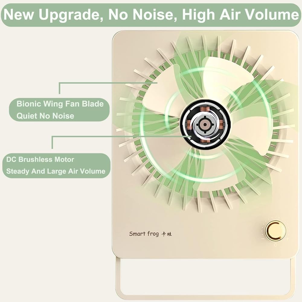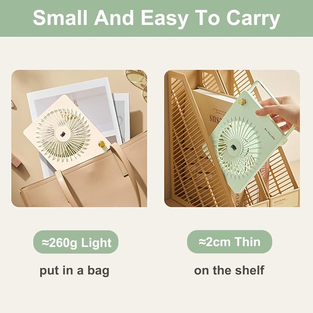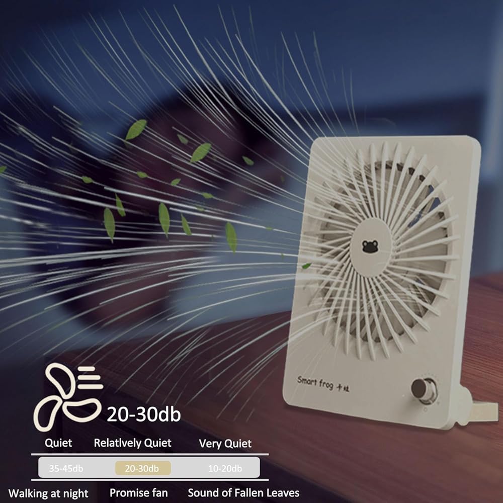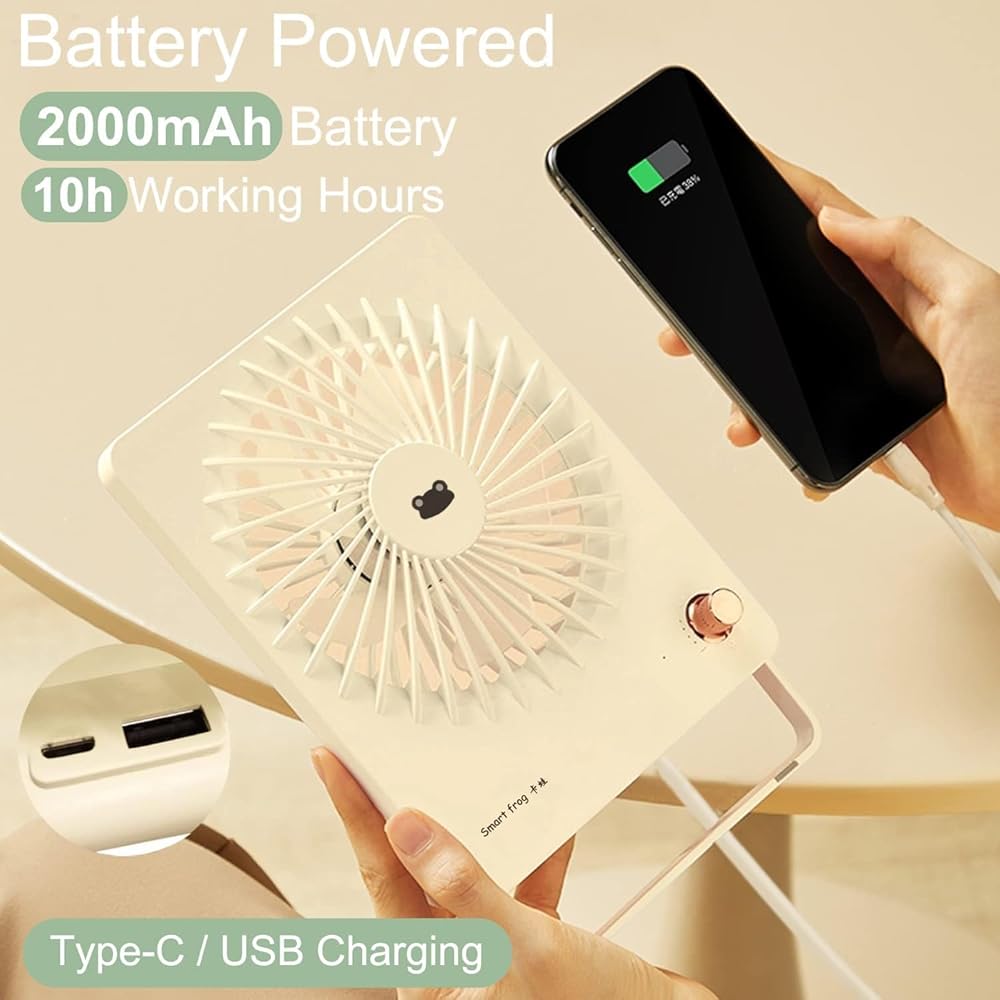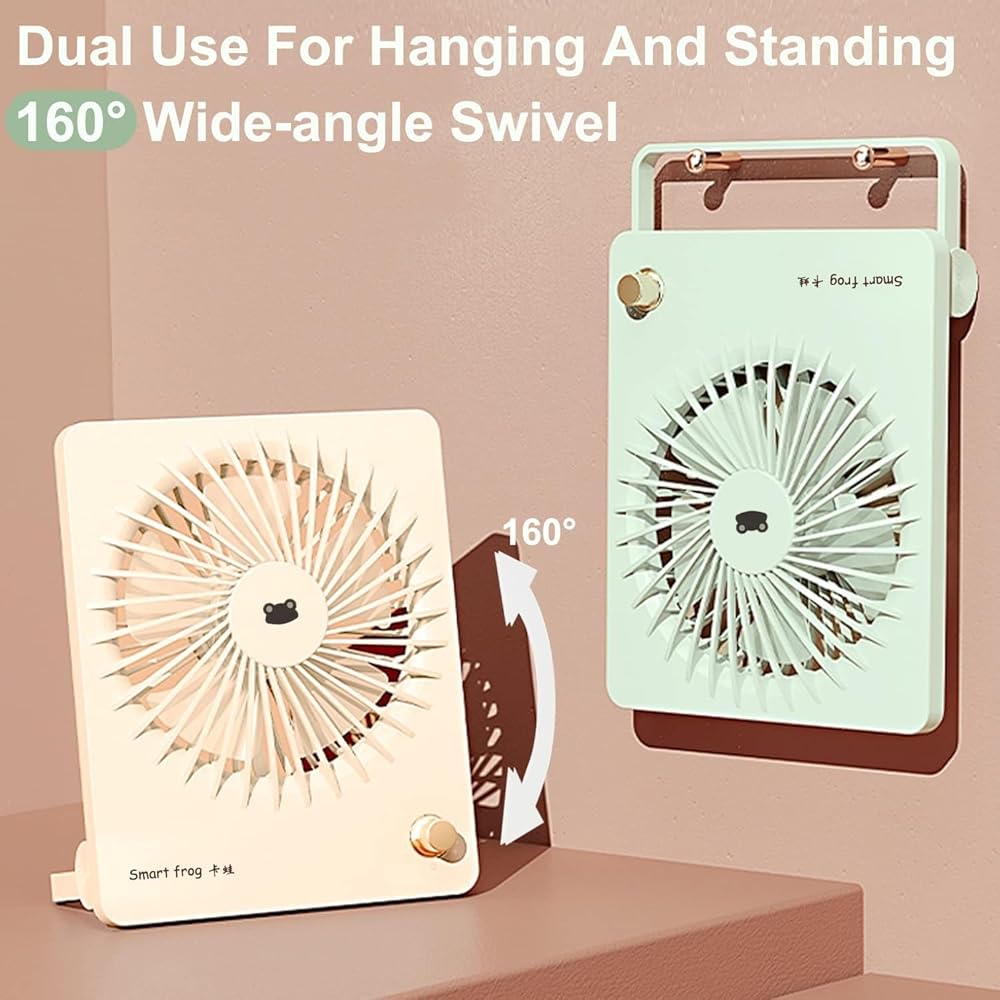 دوران 160 درجة وتصميم قابل للطي - يمكن لمروحة المكتب الصغيرة اللطيفة أن تدور 160 درجة لضبط تدفق الهواء متعدد الزوايا. يمكنك اختيار الرياح بزوايا مختلفة بسهولة. واقفاً أم معلقاً؟ مع التصميم القابل للطي، يمكن استخدامها كمروحة مكتب ومروحة تعليق!