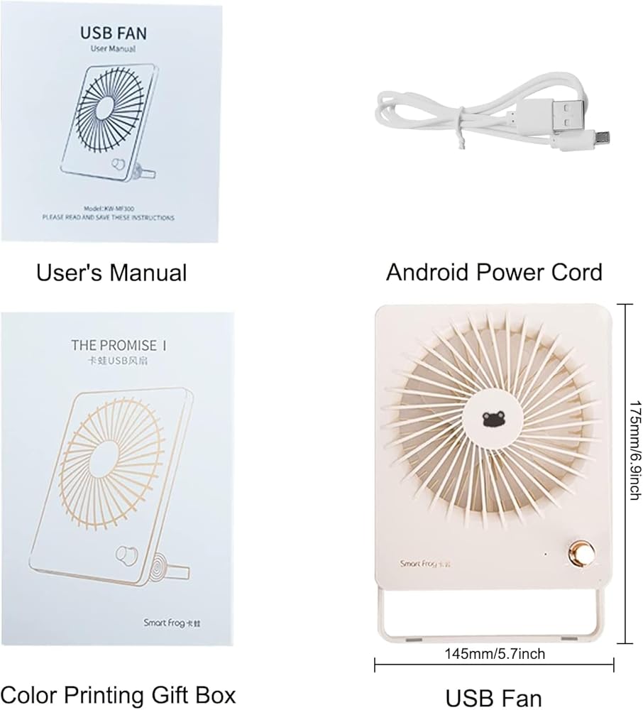 ☁ما تحصل عليه - مروحة مكتب صغيرة *1، كابل شحن USB *1، دليل المستخدم *1، صندوق ورقي رائع *1. سوف نقدم ضمانًا مدى الحياة واستبدالًا إذا كان هناك أي خطأ في مروحة المكتب القابلة لإعادة الشحن، فنحن نرحب بك للاتصال بنا مباشرة في أي وقت.
