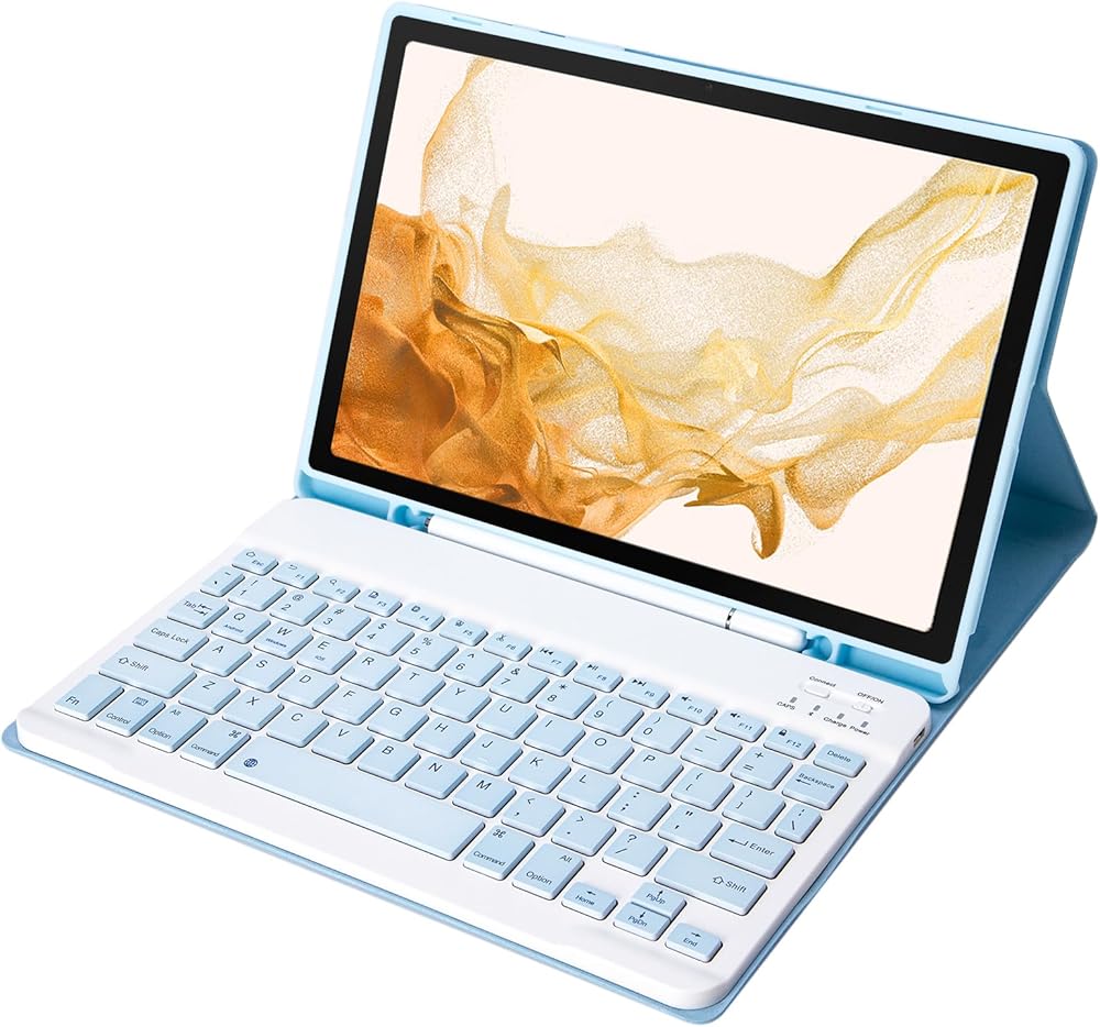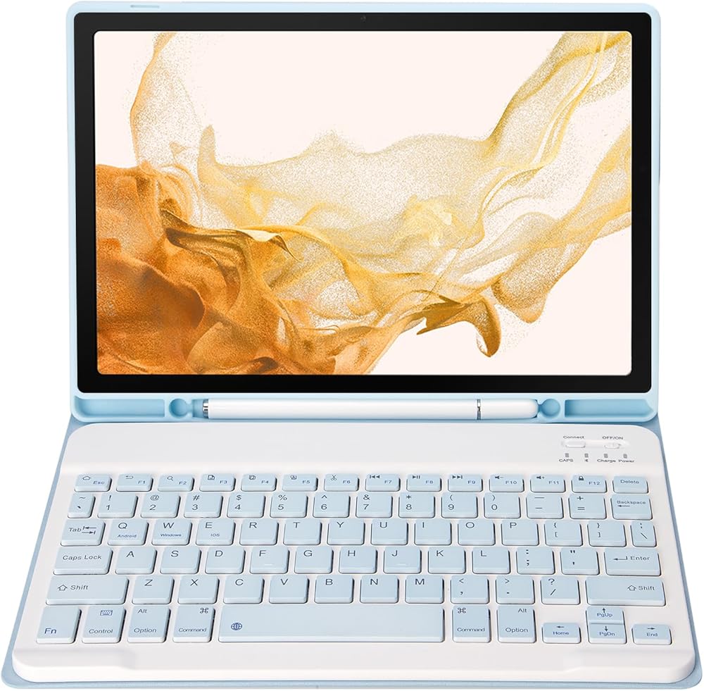 【حوّل جهازك اللوحي إلى كمبيوتر محمول】يمكن للوحة المفاتيح أن تدعم أنظمة Android وiOS. تضمن آلية الزنبرك الموجودة أسفل كل مفتاح استجابة لمسية مع كل ضغطة، مما يساعدك على الكتابة بشكل أسرع وبأخطاء أقل مقارنة بشاشة اللمس. يدعم الشحن اللاسلكي لقلم S Pen وحامل القلم الرصاص - يدعم الجراب الشحن اللاسلكي لقلم S Pen، ولن تحتاج إلى خلع الجراب.