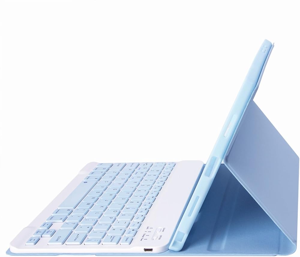 【حافظة حماية مزدوجة وزوايا رؤية متعددة】يوفر غطاء جلد البولي يوريثان المتين والجزء الداخلي المبطن بالمطاط المضاد للانزلاق الحماية الكاملة لجهازك اللوحي. غلاف من البولي كربونات الممتاز يثبت جهازك اللوحي في مكانه ويمتص السقطات والصدمات. يتم استخدام لوحة المفاتيح القابلة للإزالة كجزء من حامل الجهاز اللوحي. يدعم 3 زوايا رؤية وأخاديد مدمجة مضادة للانزلاق. قم بتحريك لوحة المفاتيح للأمام أو للخلف على طول غطاء الحافظة، ويمكنك ضبط زاوية الجهاز اللوحي حسب تفضيلاتك.