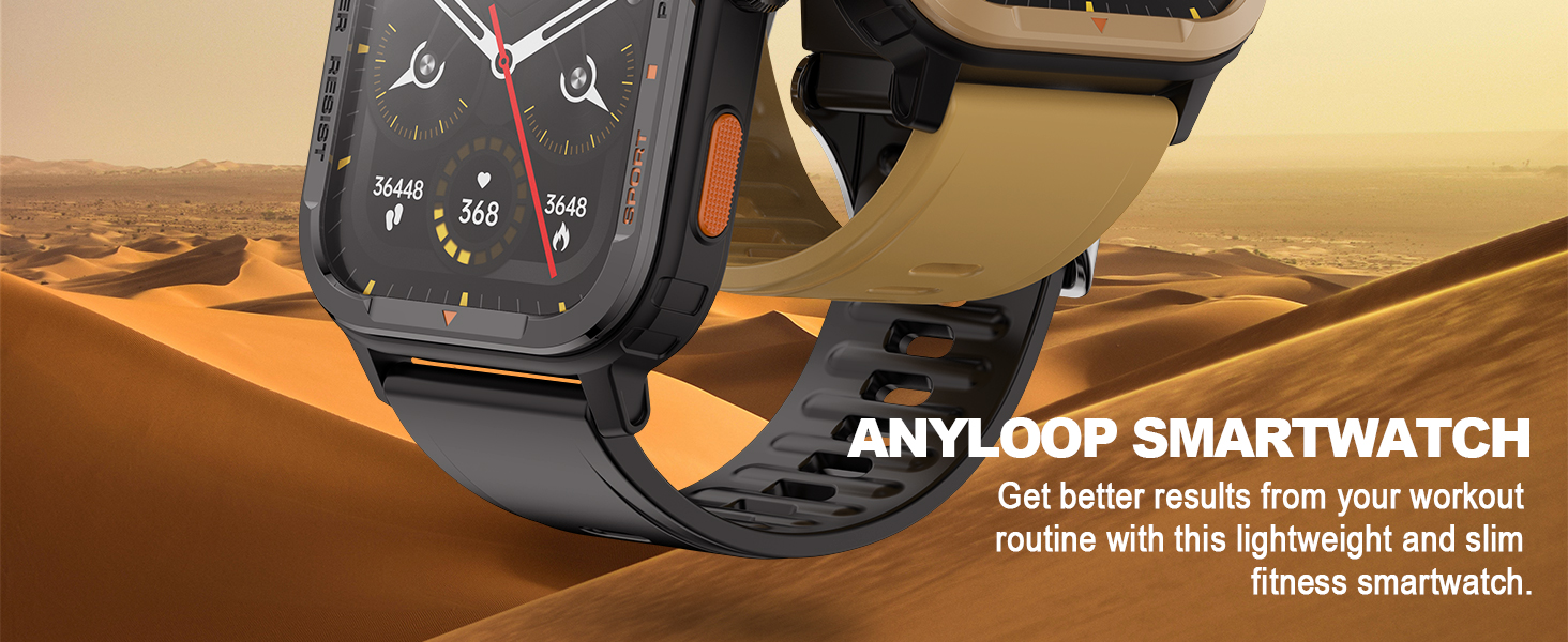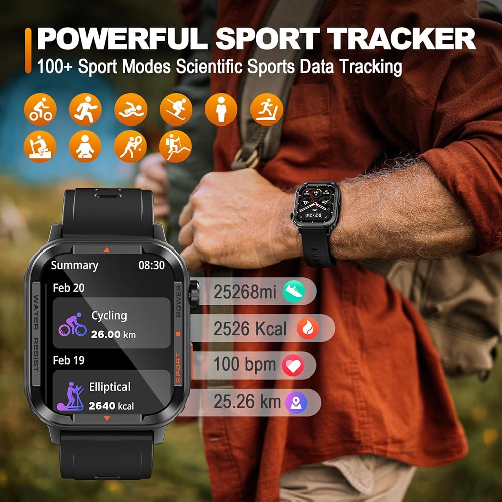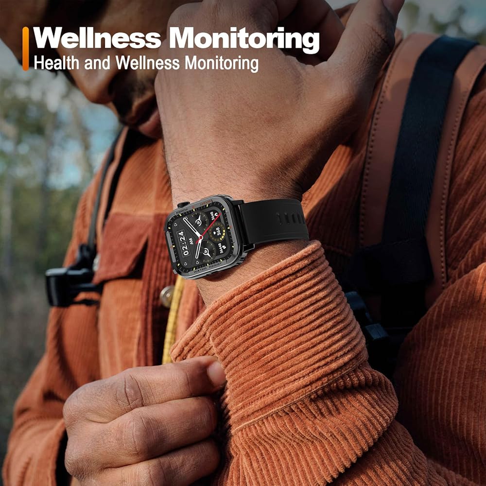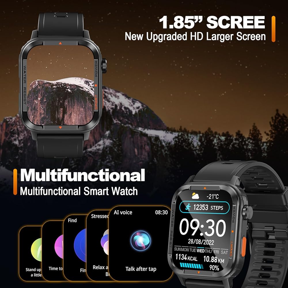 ساعات ذكية متعددة الوظائف مقاس 1.85 بوصة للرجال: ساعة ذكية Anyloop Rugged مع شاشة مقاس 1.85 بوصة، تدعم الكثير من الوظائف، بما في ذلك عد الخطوات، وتتبع السعرات الحرارية، وساعة المنبه، وساعة التوقف، والتحكم في الموسيقى/الكاميرا، والتنبؤ بالطقس، وتمارين التنفس، إشعارات الرسائل القصيرة/SNS، وتتبع النوم، والتذكير بشرب الماء، والتحذير من معدل ضربات القلب، والمزيد من الميزات لتعزيز تجربتك!