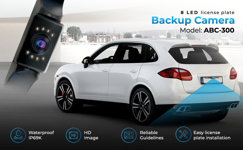 احدث كاميرا خلفية اوتوسكي HD للرؤية الخلفية 8 LED لوحة ترخيص كاميرا عالمية للمركبات - شاحنة بيك اب وسيارات الدفع الرباعي - زاوية مثالية للرؤية الليلية IP69 مقاومة للماء