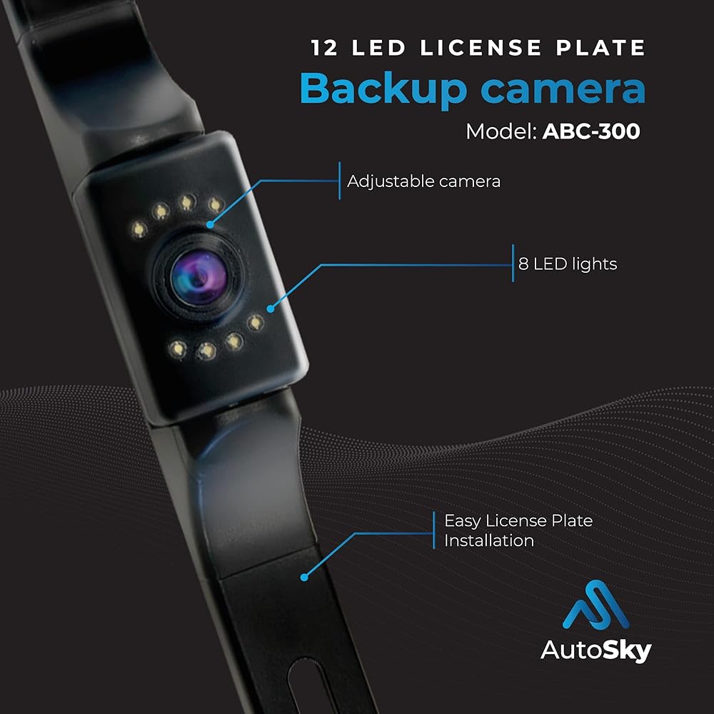 اوتوسكي كاميرا احتياطية سلكية للوحة ترخيص LED ذات 8 مصابيح LED مصممة لجميع أنواع المركبات والشاحنات وسيارات الدفع الرباعي والشاحنات الصغيرة والسيدان. يعمل بشكل جيد على السيارات القديمة أو السيارات الجديدة أو السيارات المستعملة.