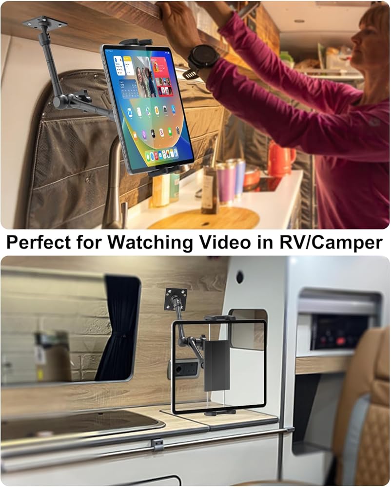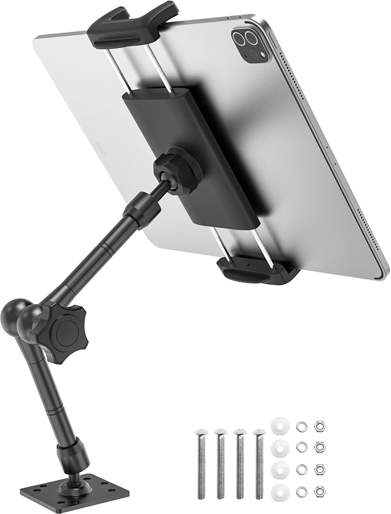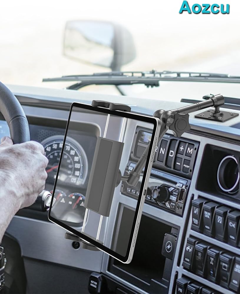 اوزكو حامل تابلت شديد التحمل للشاحنة، حامل تابلت للسيارة بقاعدة مثقاب مع ذراع معدني قابل للتعديل، حامل لوحة عدادات سيارة ار في بيك اب لايباد برو اير ميني، جالكسي تاب، زد فولد، ايفون، جهاز 4-12.9 انش