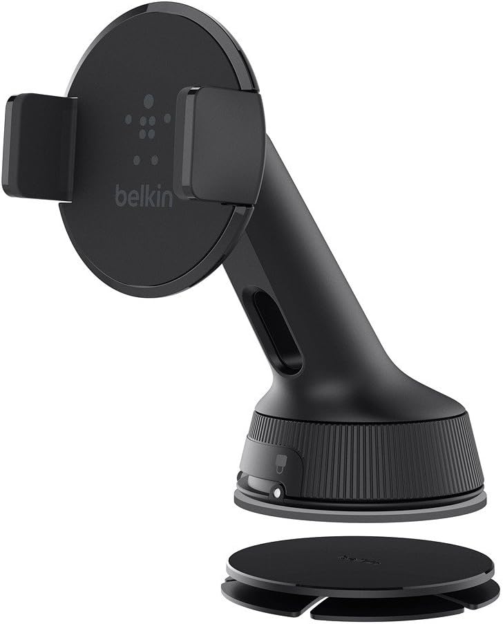خيارات التثبيت المزدوجة: يشتمل حامل الهاتف العالمي Belkin للسيارات على كوب شفط للاستخدام كحامل هاتف على الزجاج الأمامي، ومرفق منفصل لأولئك الذين يفضلون حامل هاتف لوحة القيادة
