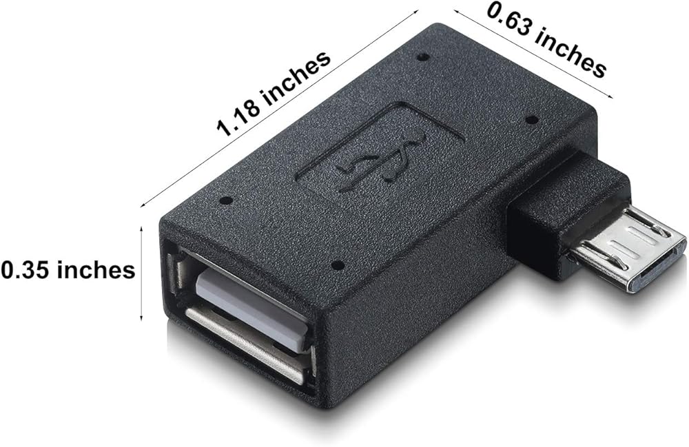 محول ZYF Micro USB OTG بزاوية 90 درجة (يسار + يمين) بزاوية مع منفذ شحن Micro USB لأجهزة Firestick، أو عصا التلفزيون المتدفقة، أو PlayStaion Classic، أو Chromecast، أو هاتف Android أو الكمبيوتر اللوحي - عبوتان