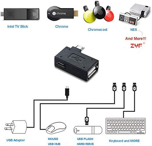 يمنح محول ZYF 2-in-1 OTG أجهزتك المضيفة فرصة لإضافة أي أجهزة طرفية USB مثل لوحات المفاتيح أو الفئران أو USB Hub أو محركات الأقراص المحمولة أو محركات الأقراص الصلبة الخارجية أو قارئات بطاقات USB أو وحدات التحكم في الألعاب أو أي شيء آخر.