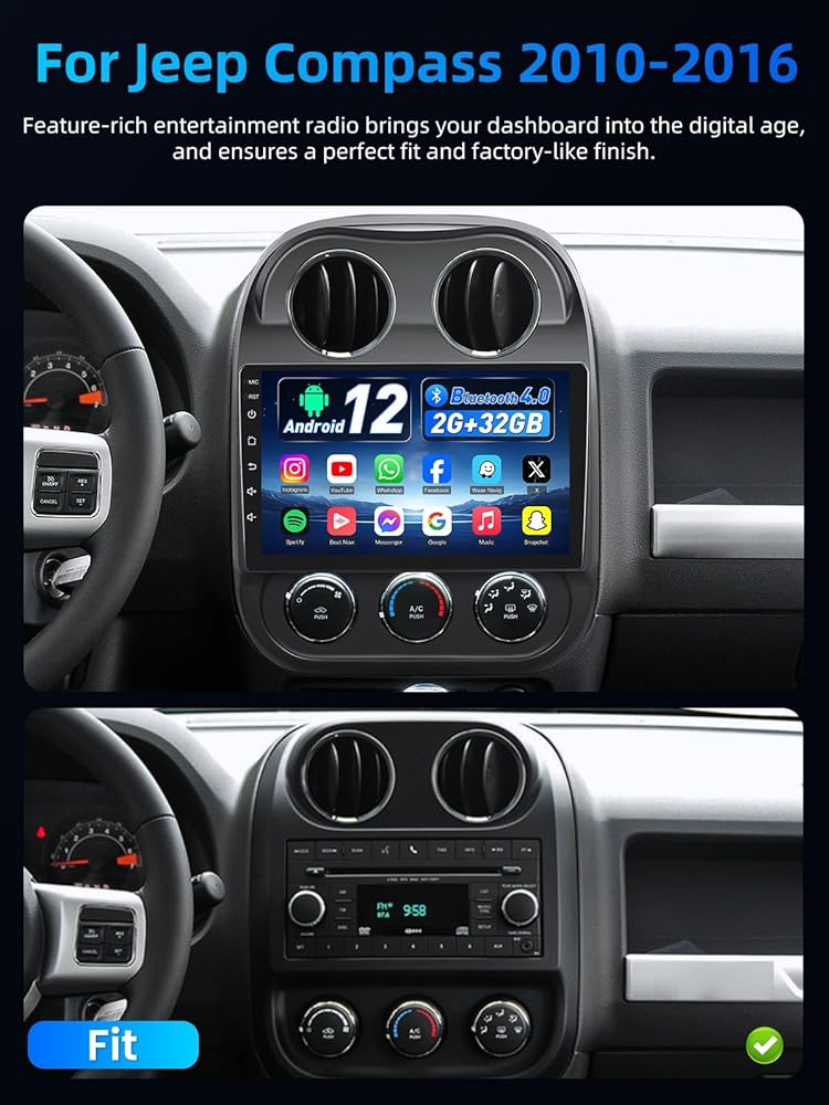 👏[نماذج السيارات القابلة للتطبيق] راديو السيارة متوافق مع Jeep Compass 2010 2011 2012 2013 2014 2015 2016. متوافق مع Jeep Patriot 2009-2016. قبل تقديم طلبك، يرجى التحقق من النموذج. إذا كان لديك أي استفسار، فلا تتردد في استشارة لنا. سوف نقوم بالرد عليك خلال 24 ساعة.
