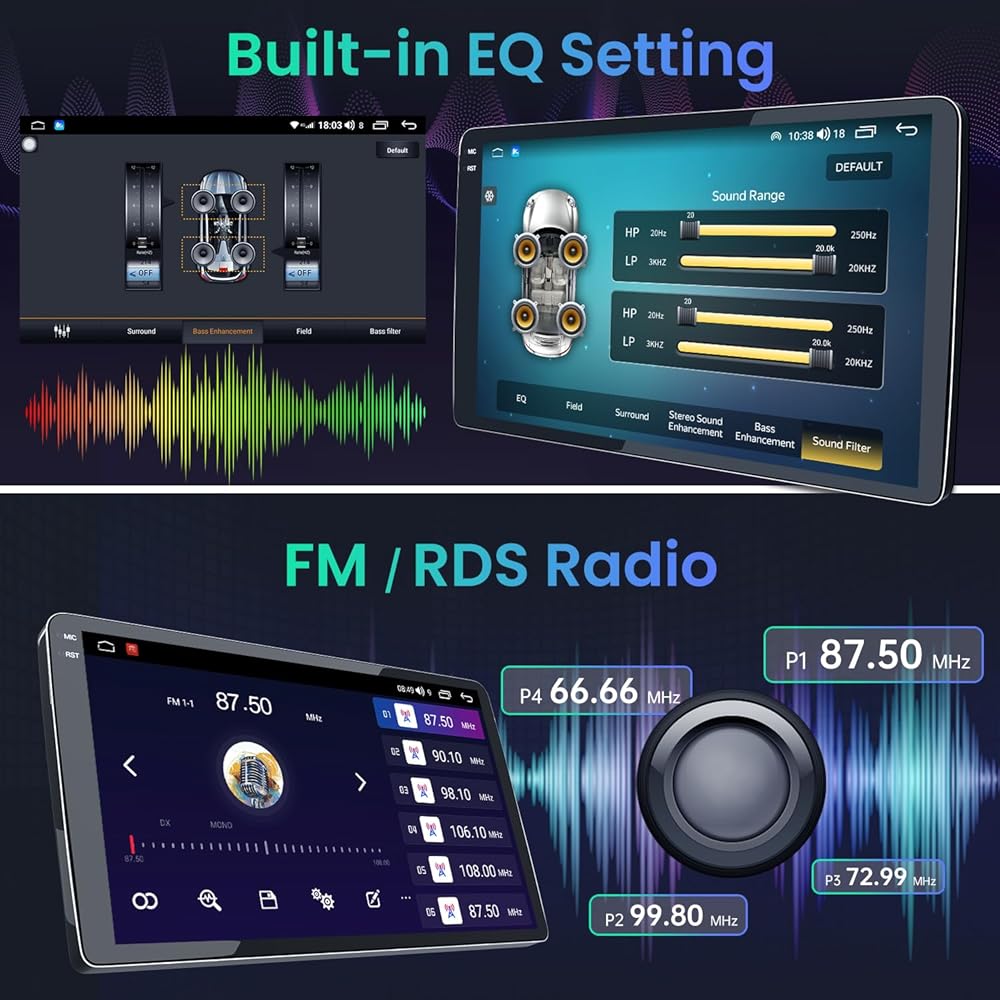🚗【خدمة ذكية متعددة الوظائف】يتضمن ستيريو السيارة وظائف مثل بلوتوث 5.0، وموسيقى DSP 16 EQ، ونظام تحديد المواقع العالمي (خريطة أمريكا الشمالية غير المتصلة بالإنترنت وخريطة على الإنترنت)، والتحكم في عجلة القيادة، وواي فاي، ووصلة المرآة، والمزيد. يمكنك أيضًا الاستماع إلى البث المباشر من خلال 18 محطة FM محددة مسبقًا. توفر لك تجربة قيادة أكثر إثارة للاهتمام وممتعة!