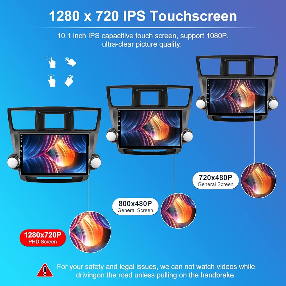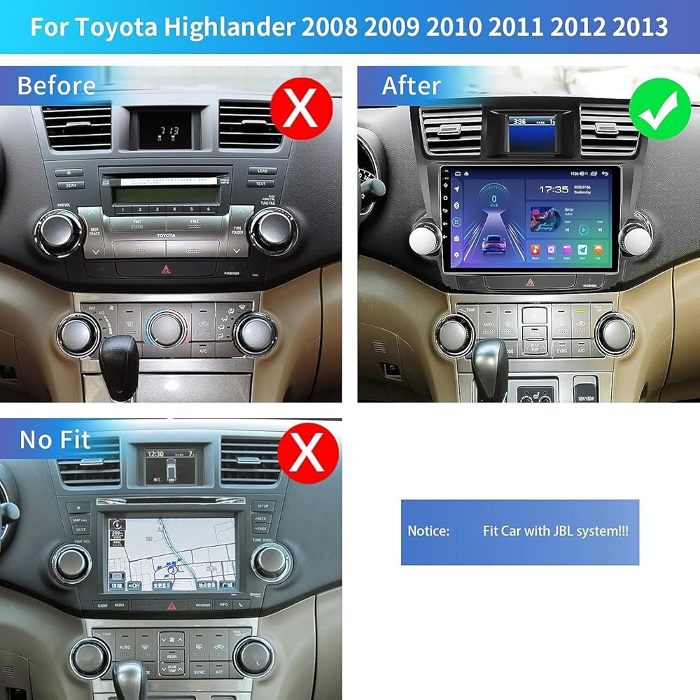 10.1 بوصة 4+32 جيجابايت راديو السيارة ستيريو لتويوتا هايلاندر 2008-2014 أندرويد 13 كاربلاي أندرويد شاشة تعمل باللمس مع نظام تحديد المواقع 48EQ النسخ المتطابق الخلفي 1080P SWC (مع نظام JBL)