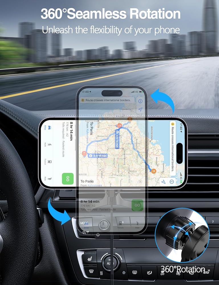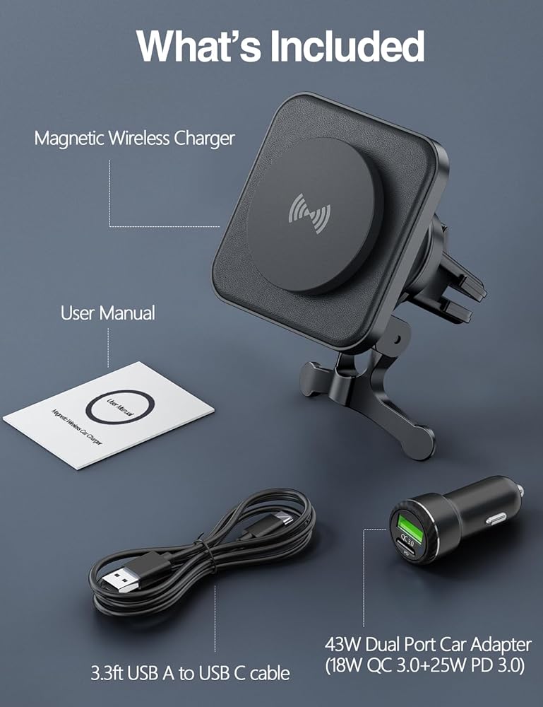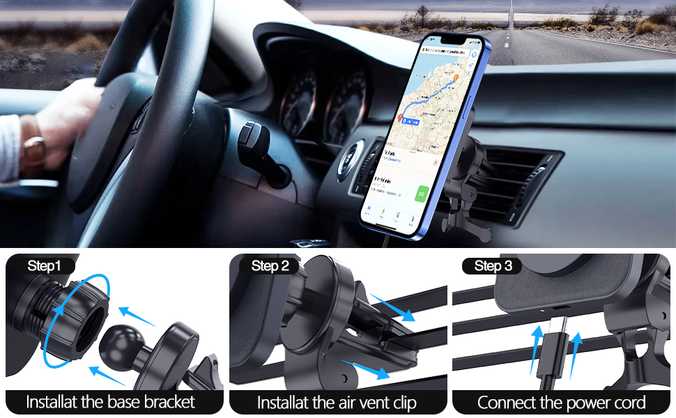 【شحن لاسلكي سريع 】: شاحن السيارة اللاسلكي شاحن المستقبل يسمح بشحن 15 واط كحد أقصى. 7.5 واط لسلسلة iPhone 15/14/13/12، ما يصل إلى 15 واط من الطاقة اللحظية. مدمج بشريحة ذكية، وهو يدعم إدارة الحرارة الذكية، مما يسمح بسرعات شحن آمنة وسريعة وفعالة. ما عليك سوى وضع هاتفك على حامل شاحن السيارة المغناطيسي وسيتم محاذاته وقفله تلقائيًا من أجل شحن مستقر وفعال. لا يتم تضمين أباتر السيارة، يجب استخدام حامل شاحن السيارة مع محول السيارة QC.