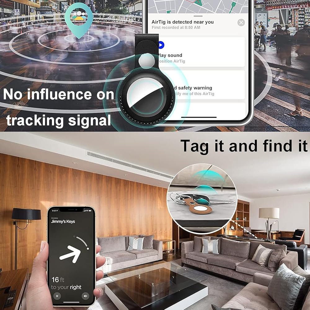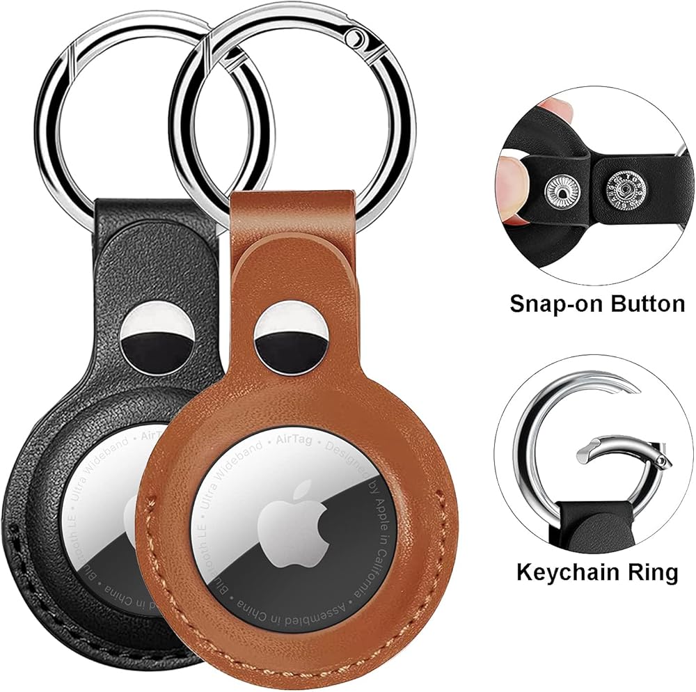 • The AirTag holder is made of soft flexible PU leather with delicate stitching, sweat-proof, scratch-resistant and durable in use. The Airtag case has a strong official button buckle, easy to install, protects the Airtag from falling and scratches.