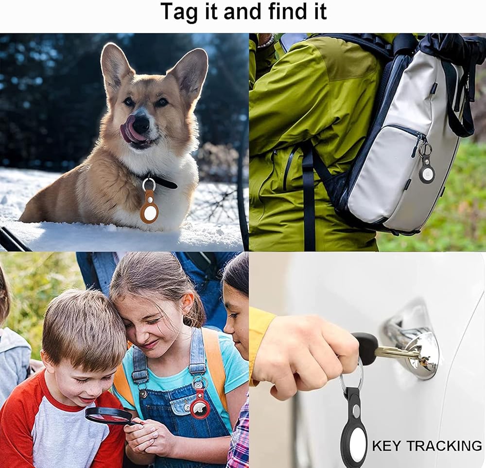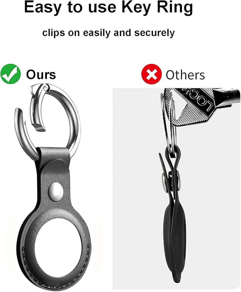 • Each Air Tag holder equipped with a simple metal key ring for secure holder and quick lock/unlock. Portable case with Air Tag key ring. Easy to be bound to other Air tag accessories like keys, car keys or collar. Compatible with Apple Airtags keychain, tag it, track and find it.