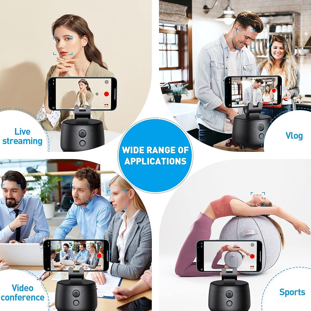 حامل هاتف بخاصية تتبع الوجه التلقائي، التعرف التلقائي على الوجه والجسم، التحكم الصوتي والتحكم بالإيماءات في 1، مناسب للبث المباشر على تيك توك وفيسبوك ويوتيوب وانستجرام وأكثر من ذلك، بالإضافة إلى التعليم عبر الإنترنت والتفاعل بين الوالدين والطفل والأداء.