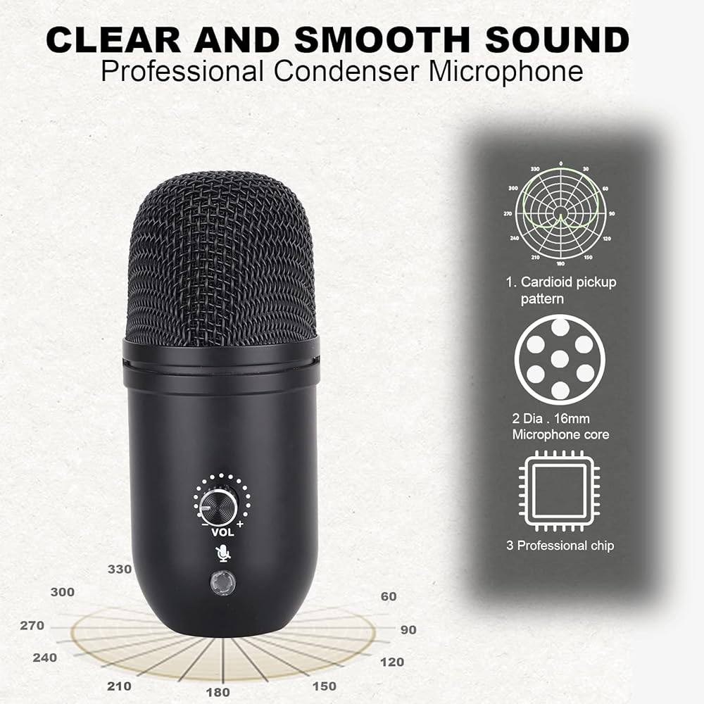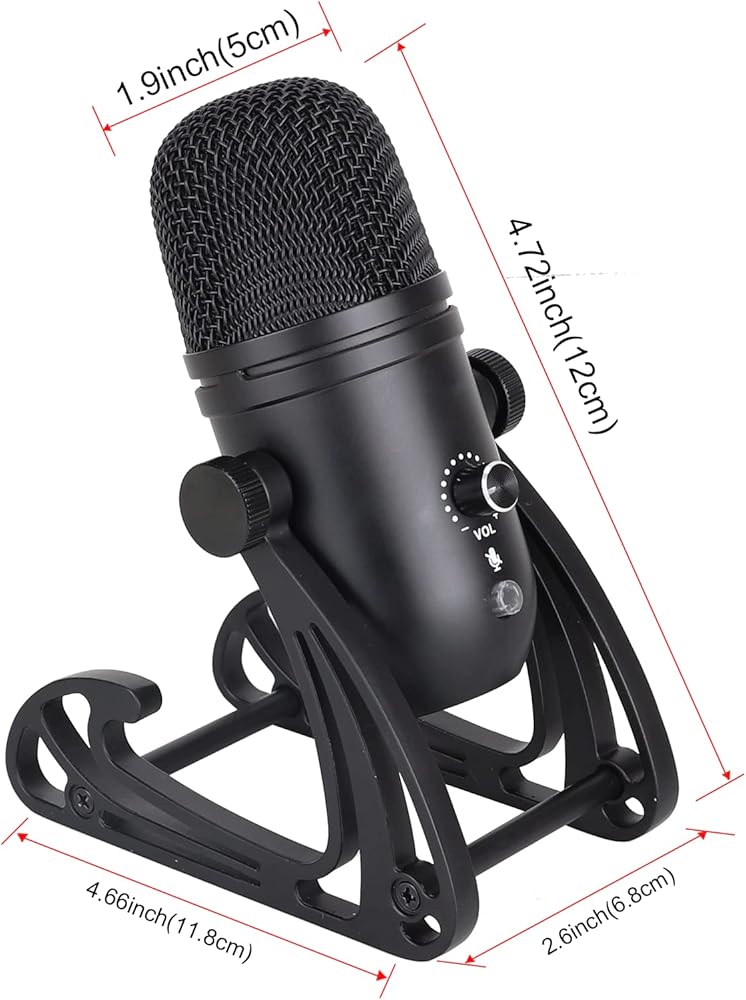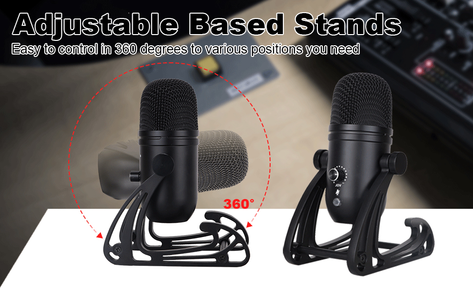 1.【Adjustable and Flexible】The mic body is made of high-quality zinc alloy,with calm black painted,dirt resistant.Designed in capsule shape,lightweight construction allows you to carry it easily and take along wherever you go.Come with metal body desk based stands,it is christmas sleigh style,not only can it be adjusted in 360 degrees to various positions you need,but also add unique look to your mic.