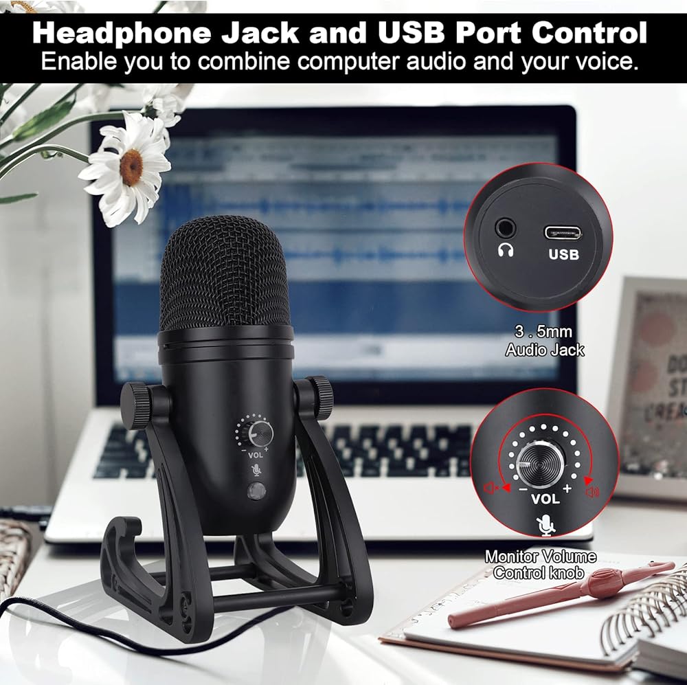 MSIZOY USB مكثف ميكروفون قلبي PC التوصيل والتشغيل ميكروفون مع قاعدة حامل قابلة للتعديل للبث والبث والتسجيل والألعاب متوافق مع الكمبيوتر المحمول سطح المكتب ويندوز الكمبيوتر التحكم في مستوى الصوت هيئة التصنيع العسكري