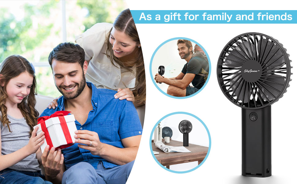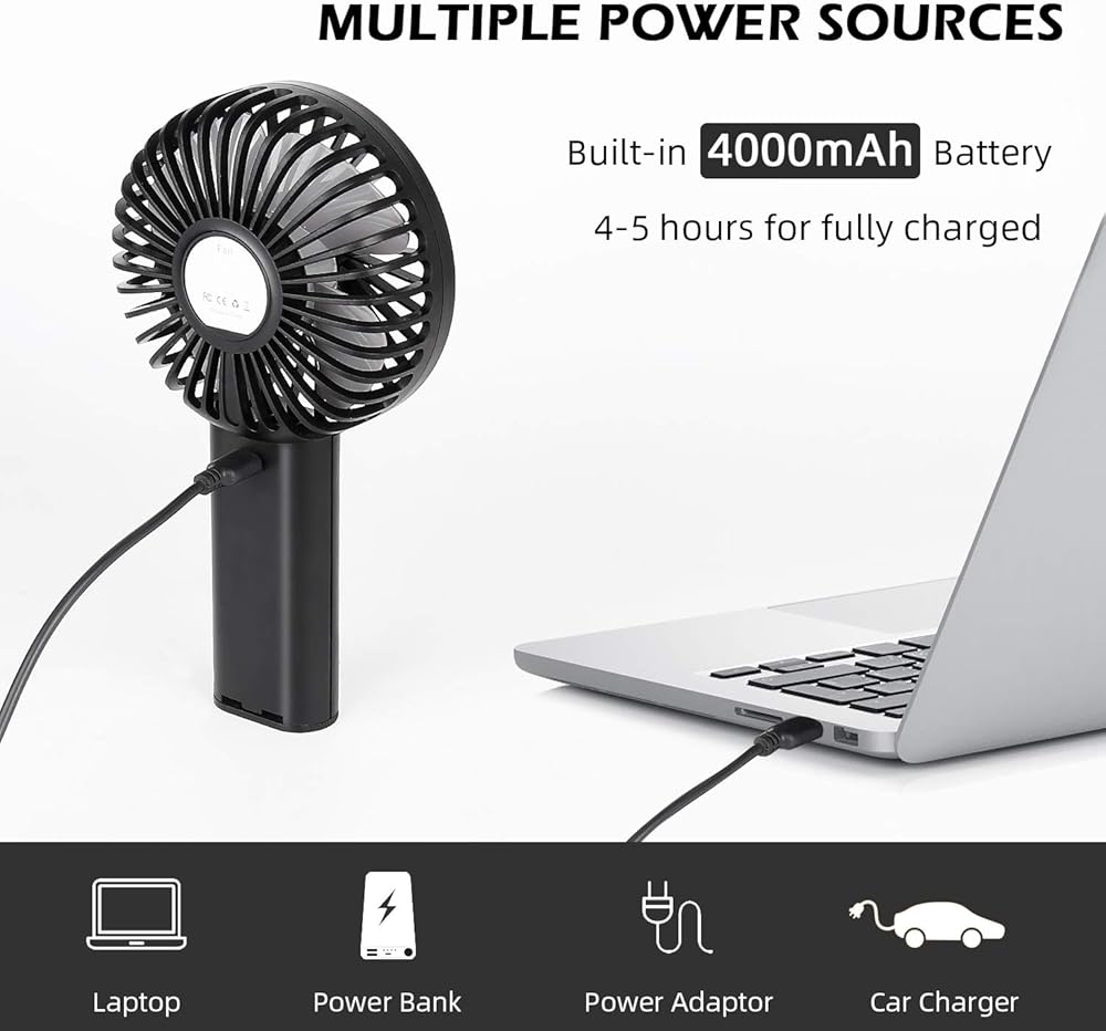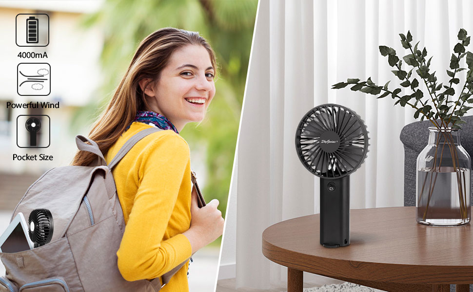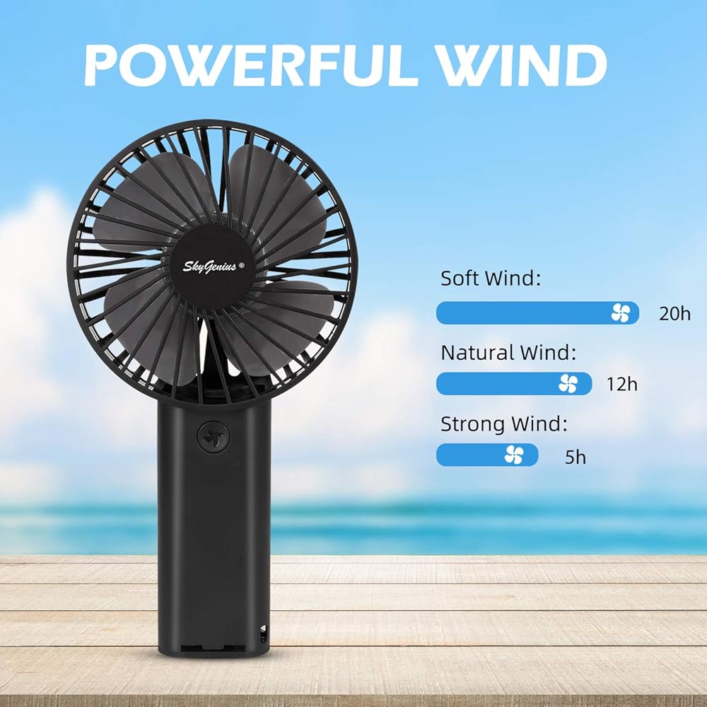 مروحة SkyGenius المحمولة المحمولة، بطارية قابلة لإعادة الشحن بقدرة 4000 مللي أمبير في الساعة/مروحة تبريد صغيرة تعمل عبر USB للمنزل والمكتب والسفر باللون الأسود