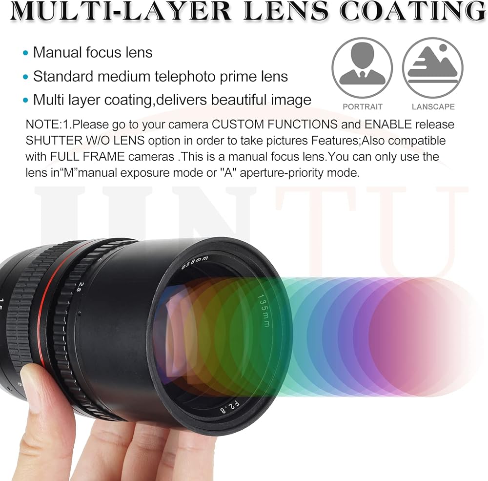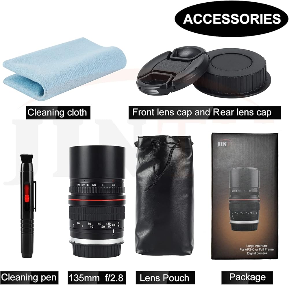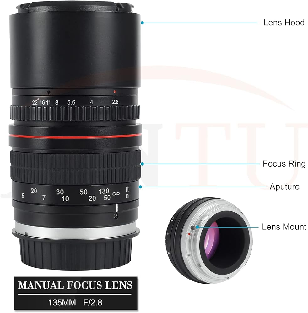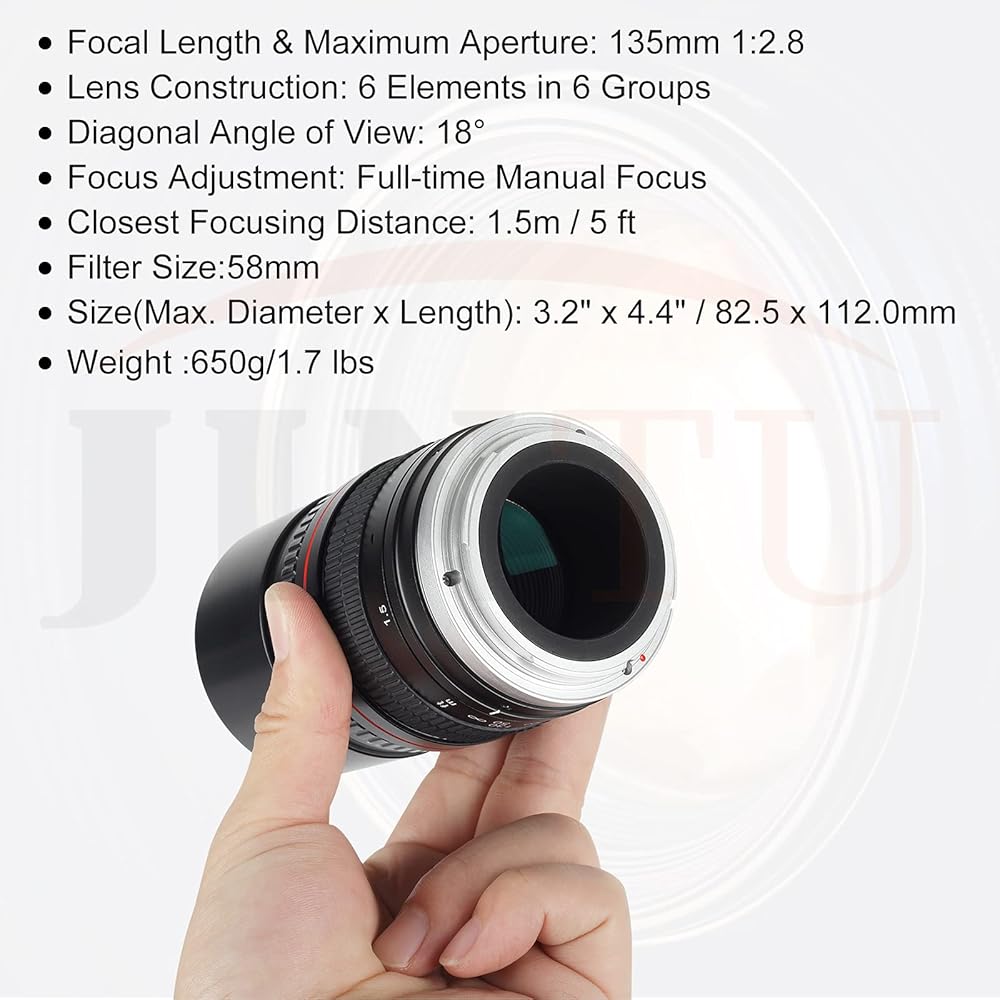 【عدسات تركيز يدوية】--- تعمل فقط على وضع m. عدسة مقربة رئيسية لأجهزة APS-C وأجهزة استشعار كاملة التنسيق. بالنسبة لأجهزة الاستشعار بحجم APS-C، يبلغ الطول البؤري المكافئ 35 مم 216 مم