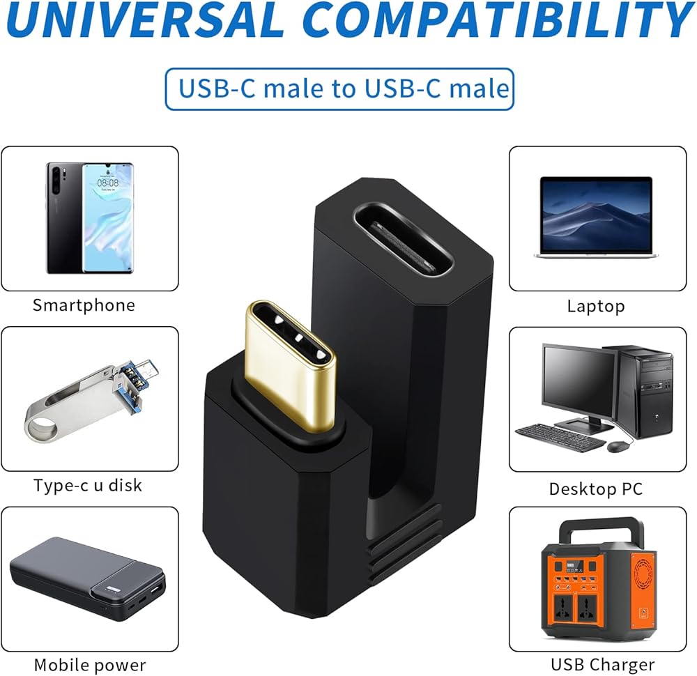 U Shape USB C Adapter can extend the Type C cable. 90 Degree Right & Left Angled type.