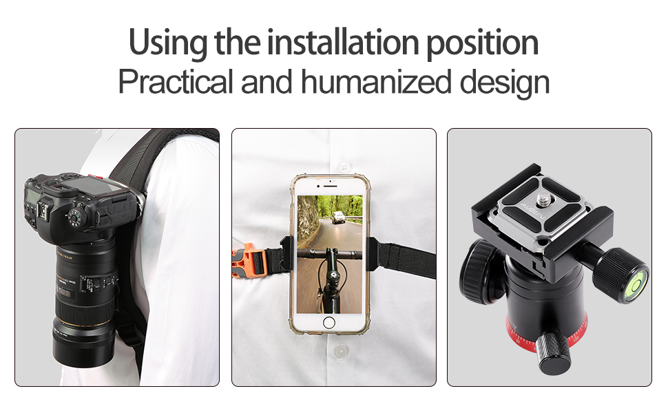 مشبك الكاميرا جميع الأجزاء مصنوعة من سبائك الألومنيوم والفولاذ المقاوم للصدأ، احمل الكاميرا بشكل موثوق وآمن.