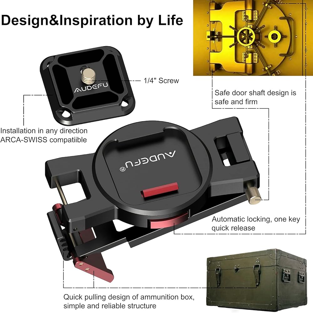 مشبك كاميرا AUDEFU مشبك كاميرا لحزام حقيبة الظهر DSLR نظام التحرير السريع حامل مشبك حقيبة الظهر حامل حزام الكاميرا... تصميم براءة اختراع الولايات المتحدة الأمريكية
