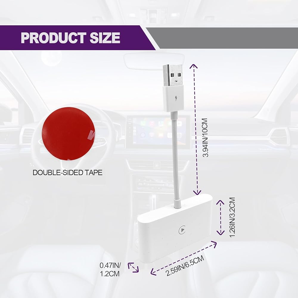• 【دونجل كاربلاي بتصميم مدمج】محول تشغيل السيارة اللاسلكي هذا هو عامل شكل صغير بتصميم غير مزعج وبسيط، يبقى بعيدًا عن الطريق عندما تكون على وحدة التحكم المركزية الخاصة بك. يمكنك توصيل سيارتك عبر محول USB-A أو USB-C المستقل بمحول CarPlay.