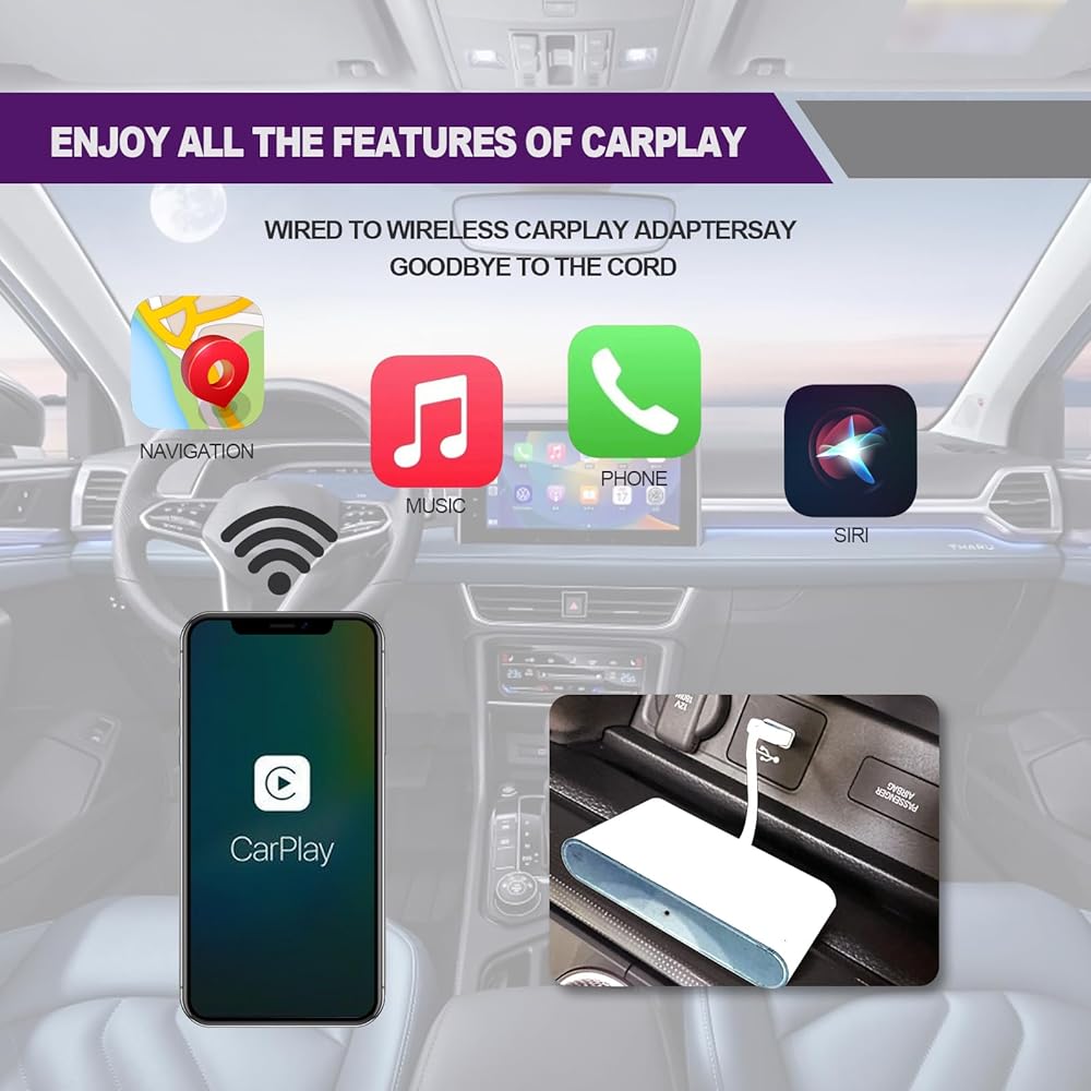 • 【محول CarPlay اللاسلكي】لا مزيد من الأسلاك! بفضل محولات CarPlay اللاسلكية، يمكنك تحويل أي سيارة مزودة بـ CarPlay السلكية إلى سيارة لاسلكية دون أي متاعب. يرجى ملاحظة أن هذا الدونجل متوافق فقط مع Apple CarPlay وليس مع أي نظام آخر.