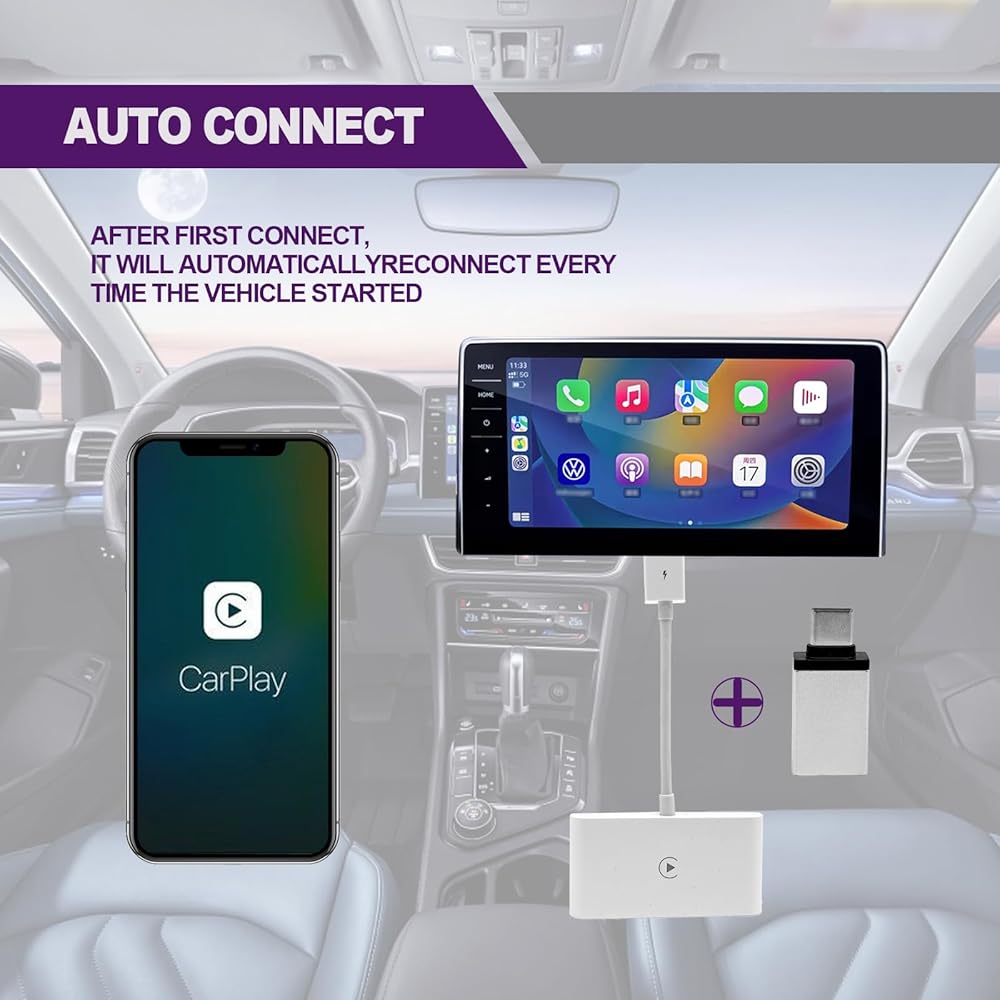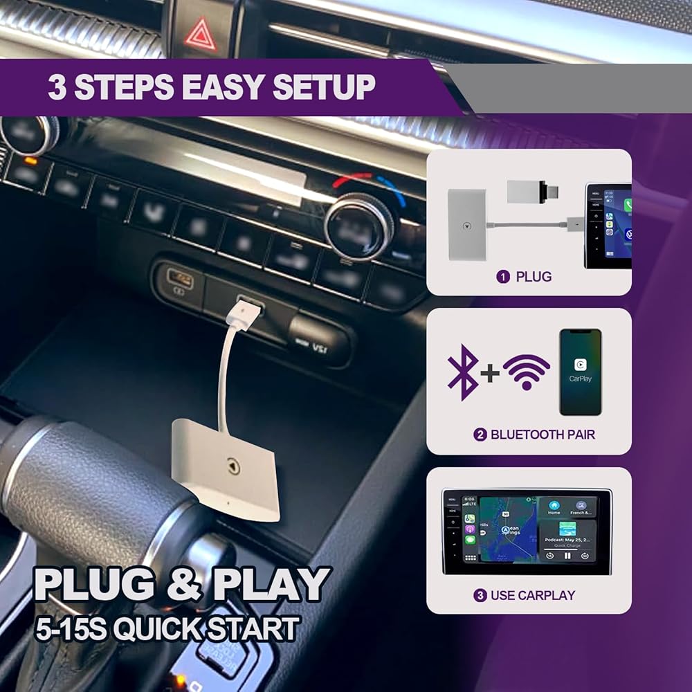 • [سهل الاستخدام والاتصال التلقائي السريع] يتميز محول تشغيل السيارة اللاسلكي بتصميم بسيط للتوصيل والتشغيل يسهل على جميع سائقي السيارات استخدامه، ولا حاجة إلى أي محرك إضافي أو تطبيقات أو ترقيات نظام مزعجة، بمجرد الانتهاء من الإعداد الأولي. تم الانتهاء من ذلك، سيقوم محول CarPlay اللاسلكي بتنشيط اتصال CarPlay اللاسلكي تلقائيًا خلال 5 إلى 12 ثانية في كل مرة تبدأ فيها السيارة.
